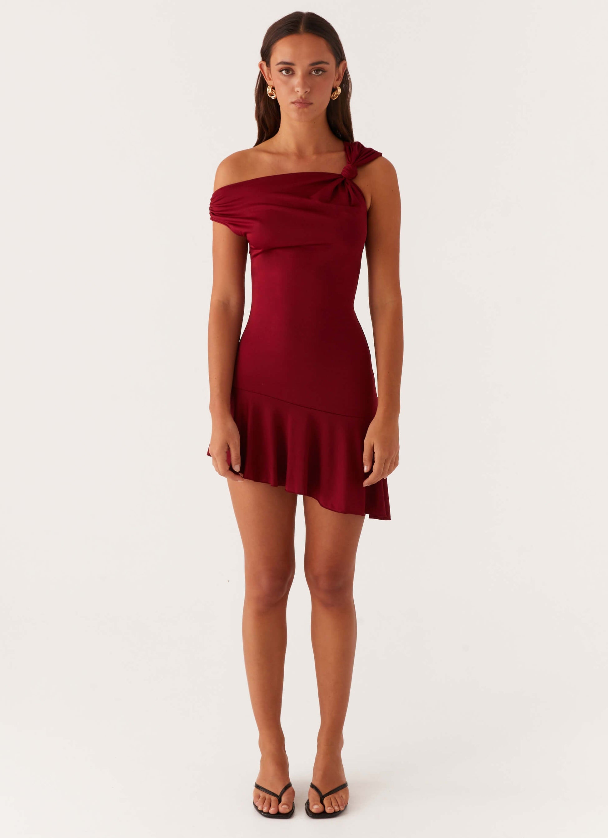The Amaya Twist Mini Dress is a captivating piece that brings flair to your evening outings. Featuring an off-shoulder neckline, it elegantly highlights your shoulders while the playful flair fit adds movement and charm.