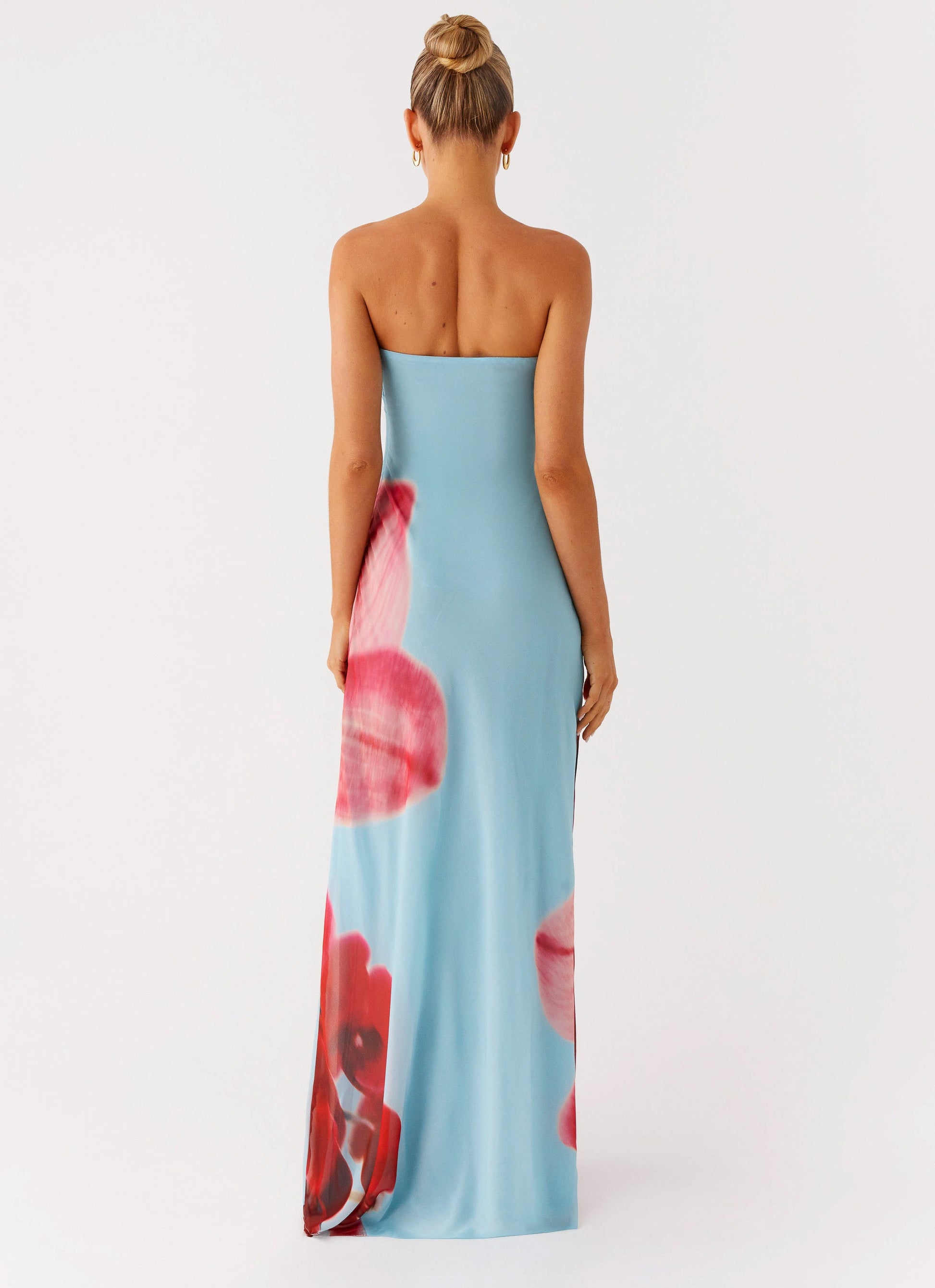 The Amelle Maxi Dress is made for enchanting evenings with effortless charm. Featuring a strapless neckline with silicone taping and an exclusive print, this fully lined maxi dress includes a side hook and eye with an invisible zipper for a sleek finish.