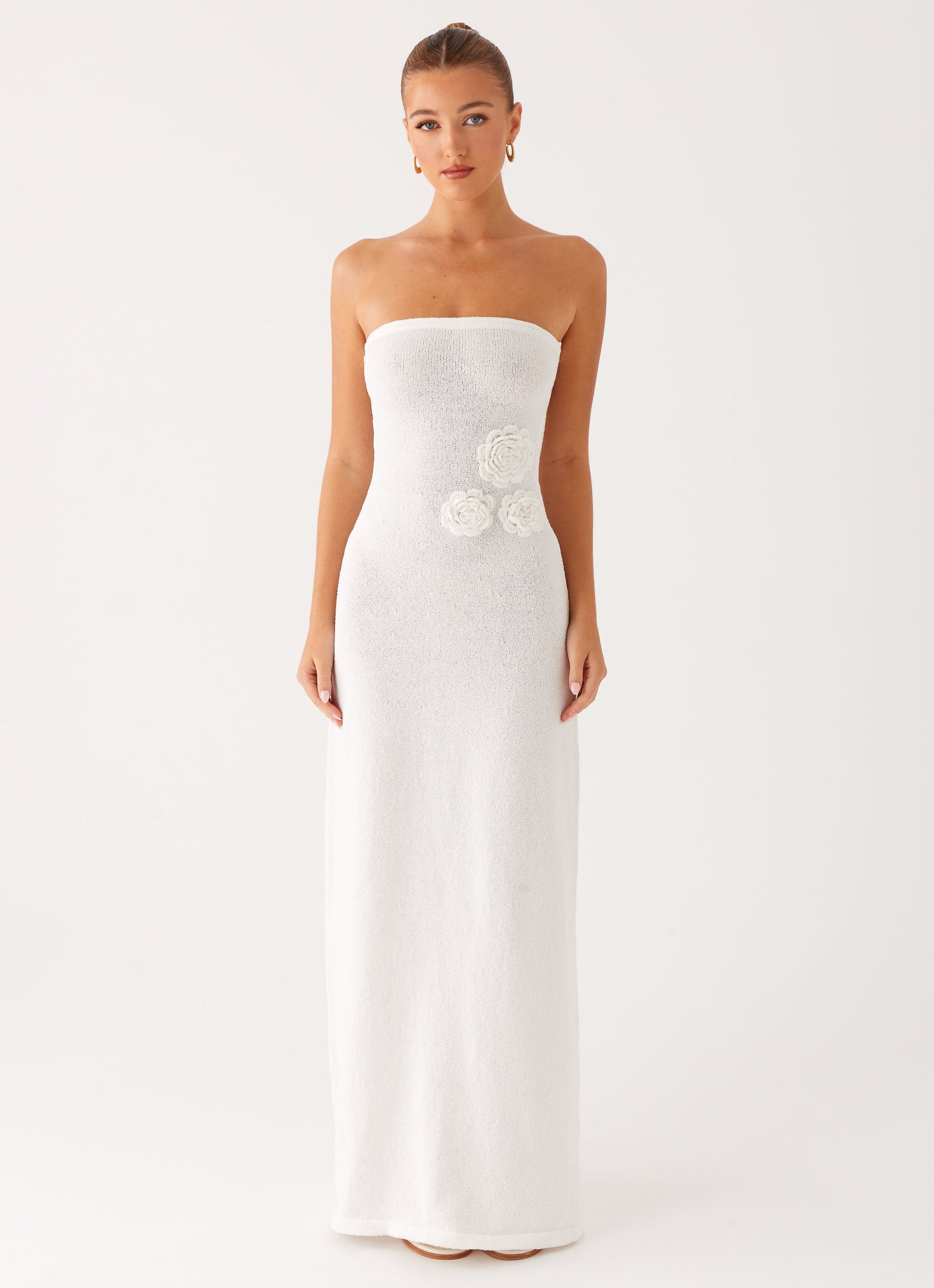 The Arli Strapless Maxi Dress is the perfect balance of elegance and comfort. Featuring a strapless neckline and crafted from a stretch thick knit, it offers a flattering, figure-hugging silhouette.