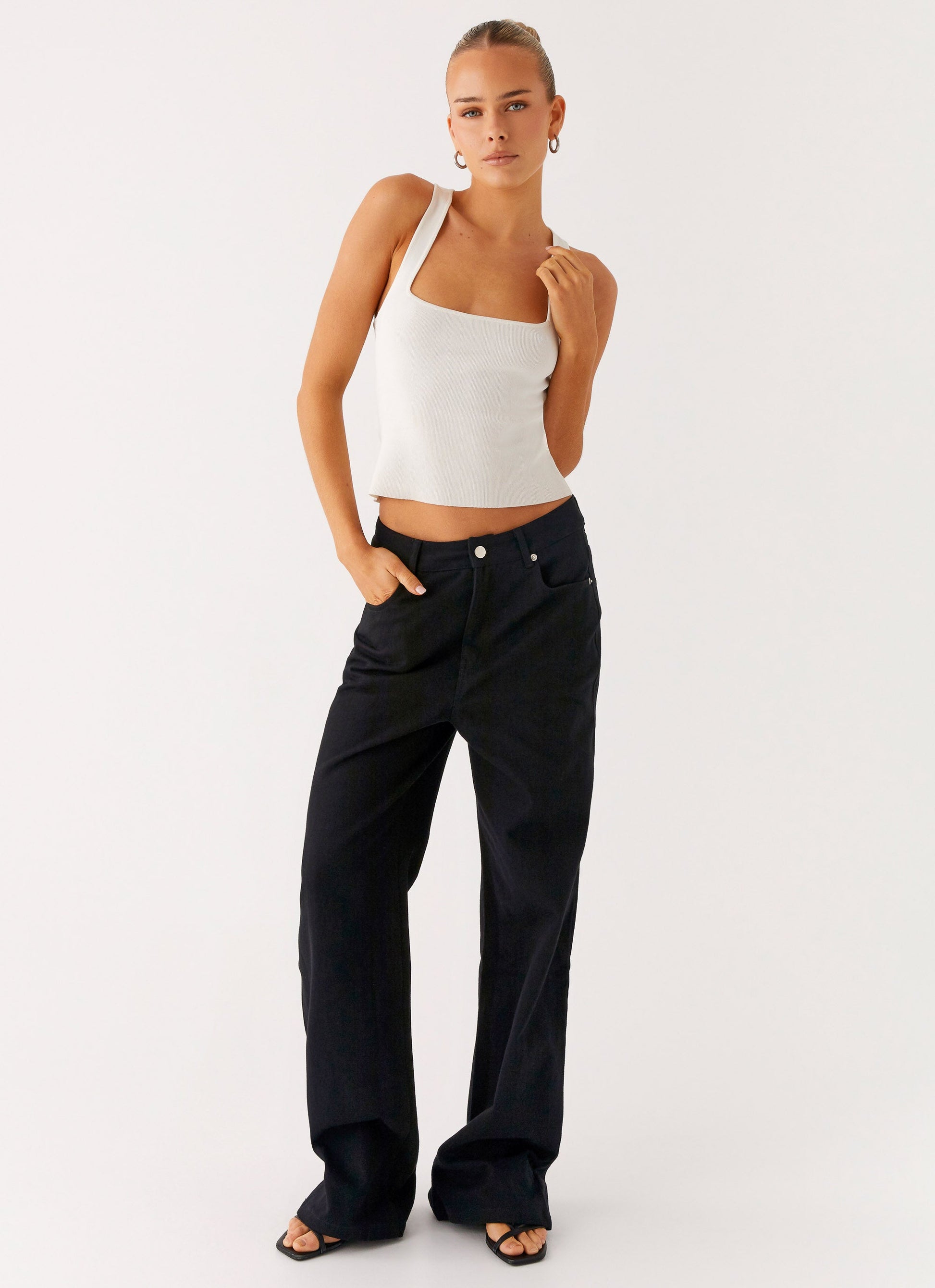 The Back Again Straight Leg Denim Jeans bring laid-back cool to your after-dark edit. Featuring a low rise with side slanted pockets and back patch pockets, these unlined jeans offer a baggy fit finished with front metal button, invisible zipper, and belt loops for versatile styling.