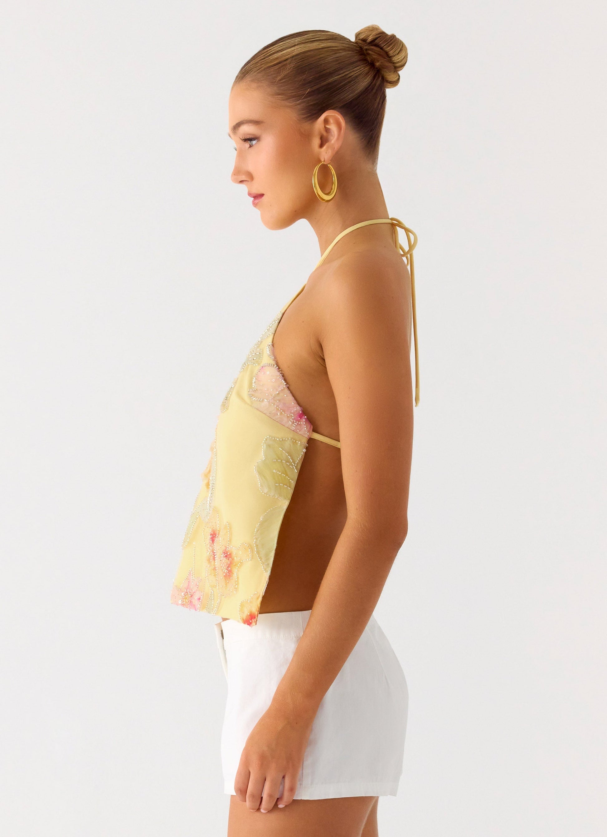 The Bliss Beaded Halter Top is a sparkling and stylish piece perfect for festival looks or evening events. Featuring a halter neck and adjustable back strap, it offers a secure fit while showcasing intricate beaded detailing.