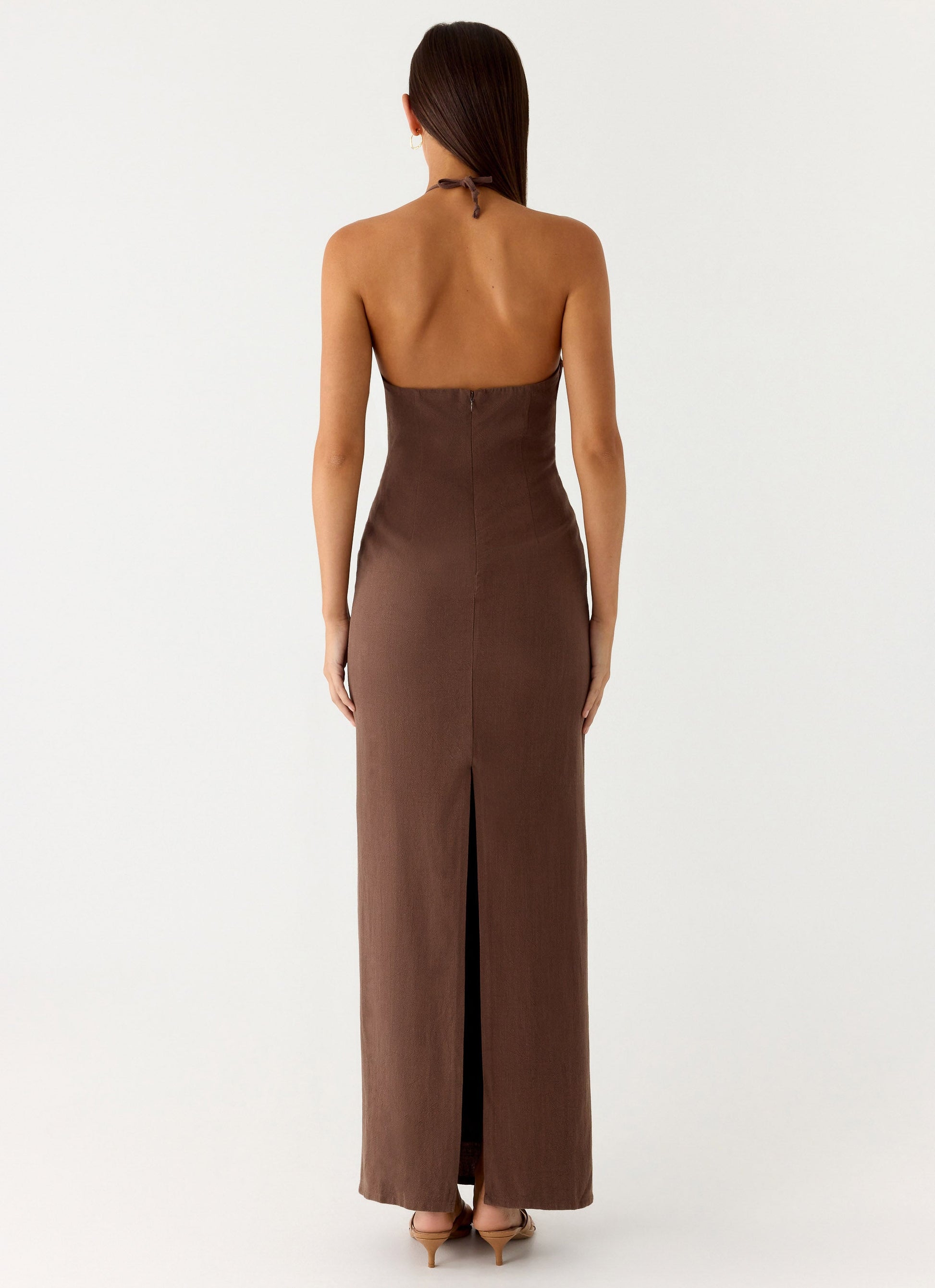The Bloomers Maxi Dress is made for golden hour moments and effortless elegance. Featuring a maxi length, halter neckline, and beaded straps, this fully lined dress offers a flattering silhouette with a front keyhole cutout and a low back, perfect for summer evenings and beach-to-bar style.