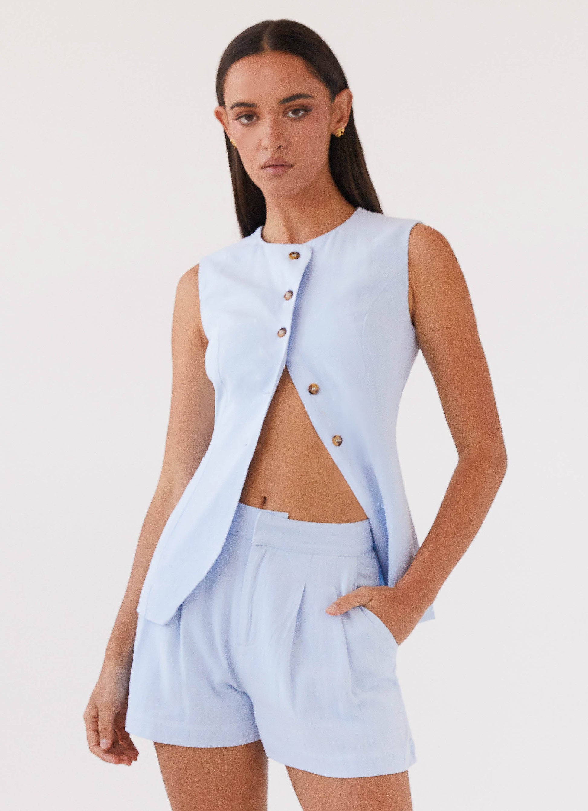Step into sophistication with our Born For Bordeaux Linen Vest, now available in a captivating Blue. Crafted for those who thrive under golden skies and balmy nights, this versatile piece effortlessly elevates your style.