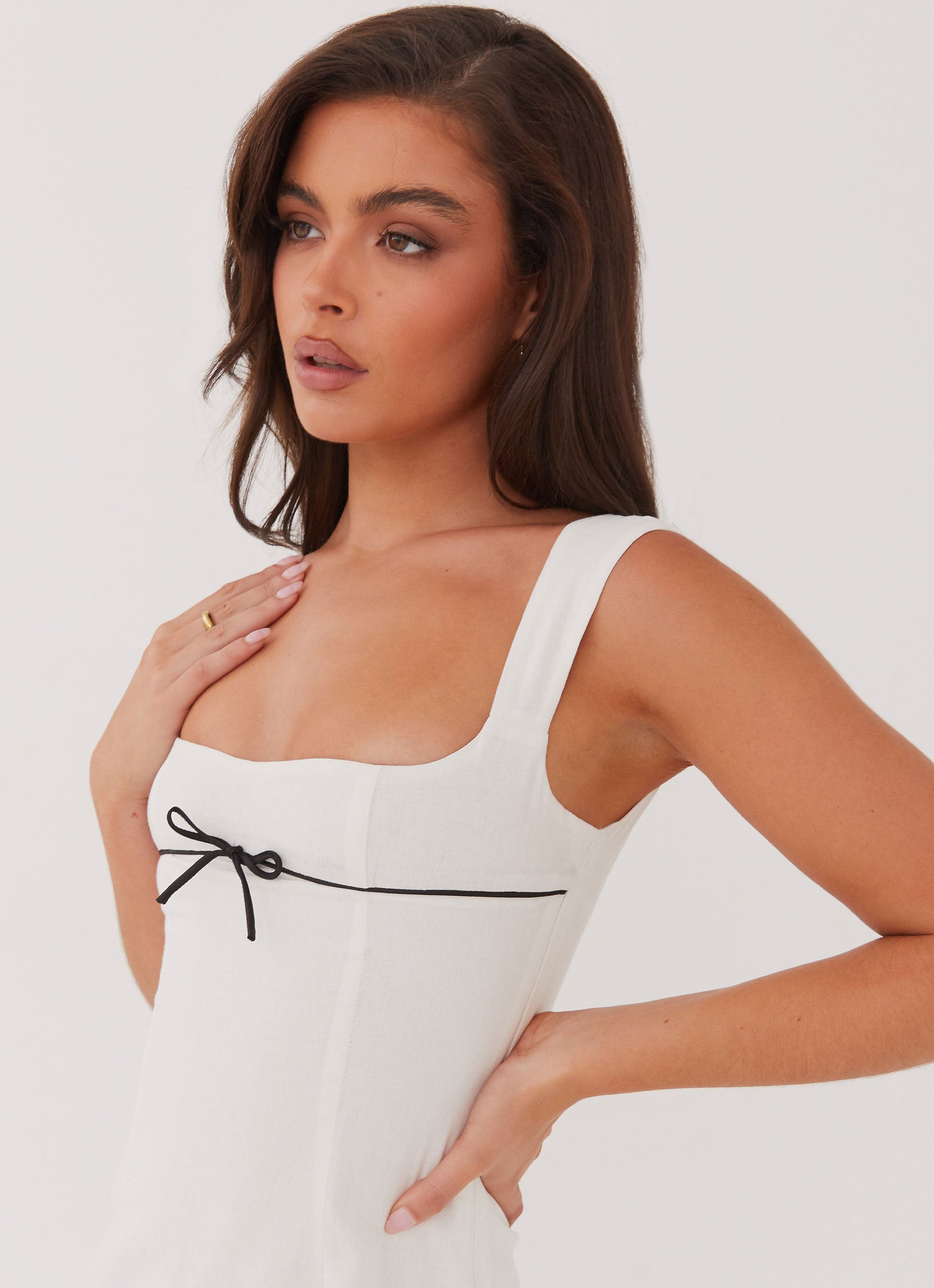 Elevate with our chic Cadence Mini Dress. Featuring a striking black ribbon detail, this dress is crafted for those who come alive in the PM. Pair with heels and silver jewellery to complete your glamorous look for golden skies, balmy nights, and unforgettable nightclub scenes.