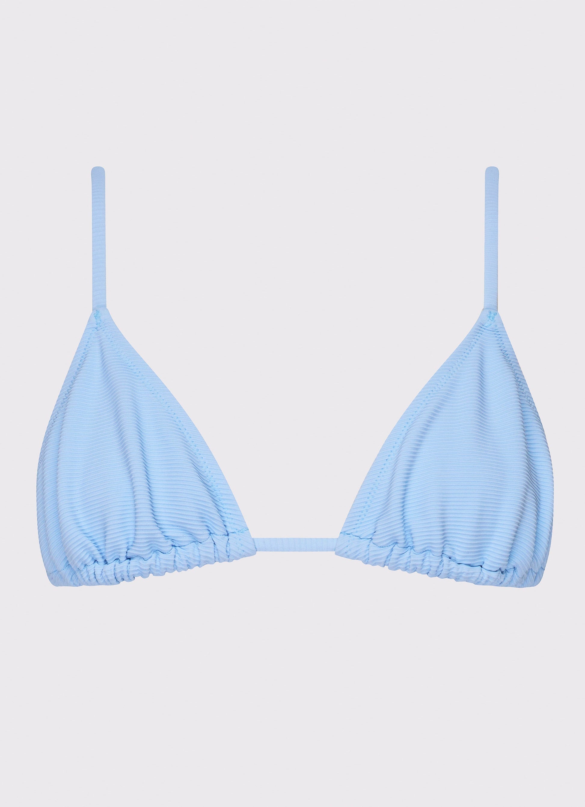 Dive into sunset dreams with the Calista Bikini Top. Featuring a triangular bustier and ruched underbust, this piece offers a flattering fit with a back tie. Perfect for those golden hours by the water, where balmy nights and nightclub silhouettes come alive.