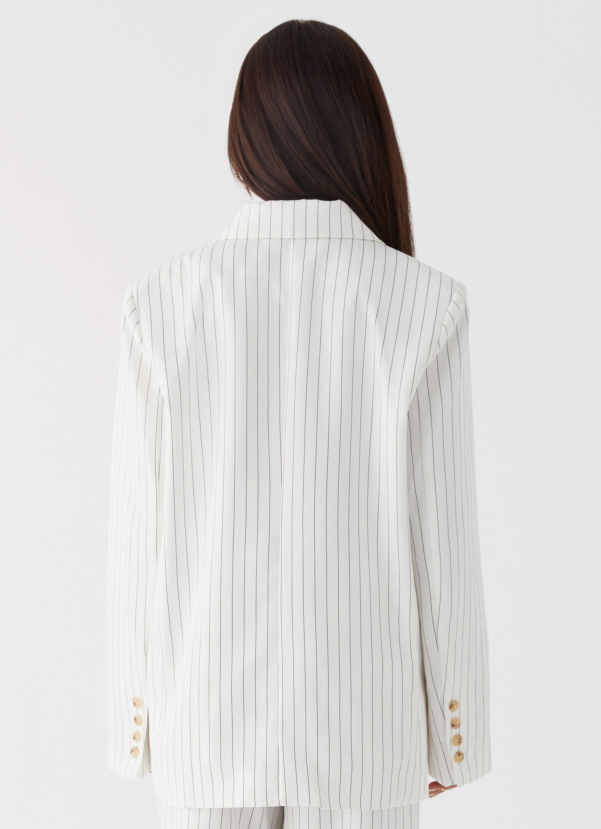 Can't Leave Pinstripe Oversized Blazer - White Pinstripe