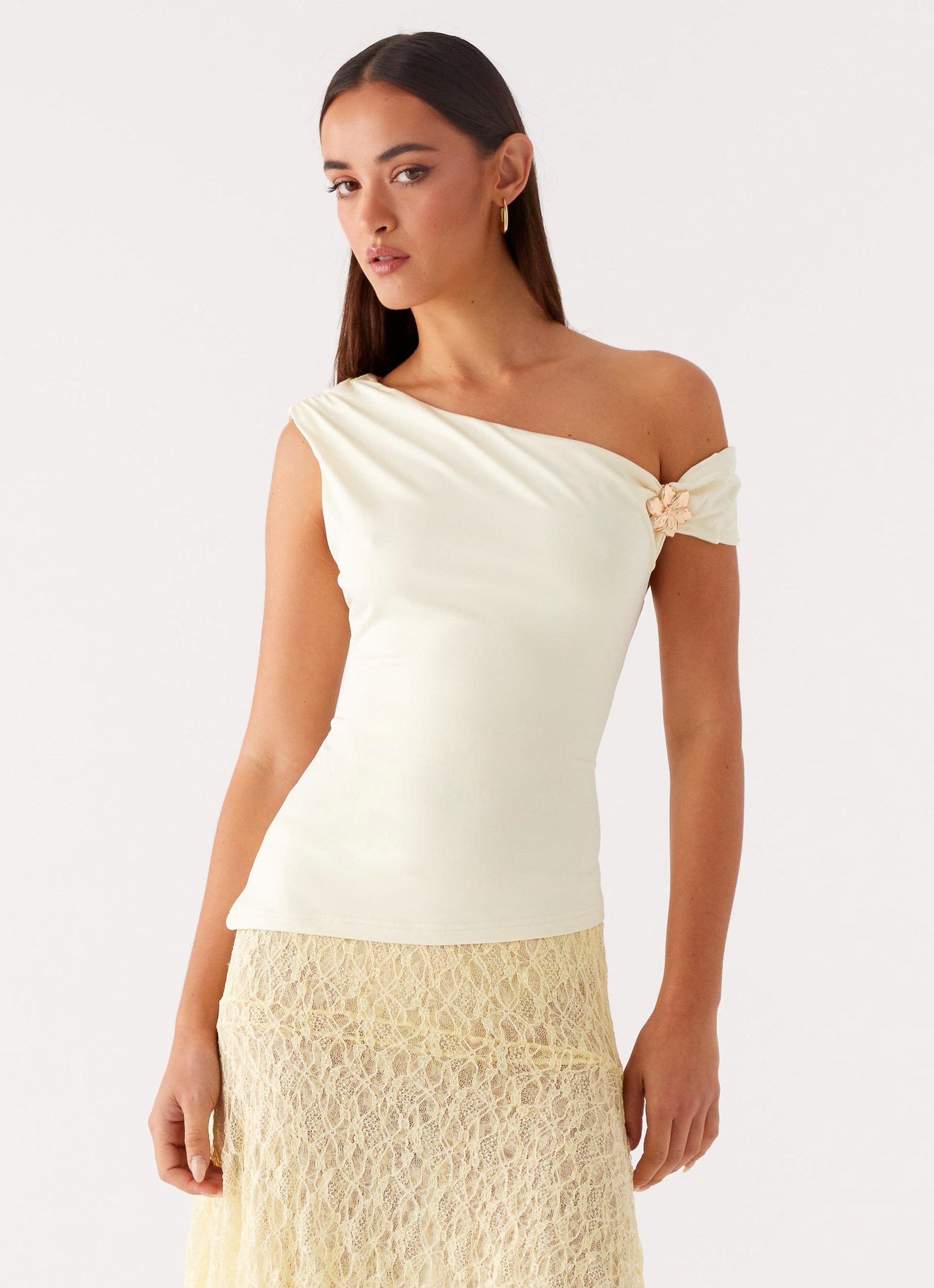 The Catch Flights Top is a striking, form-fitting piece designed in stretch jersey for a sleek silhouette. Featuring an off-shoulder neckline, it’s accented with a bold side metal embellishment that adds a touch of edge