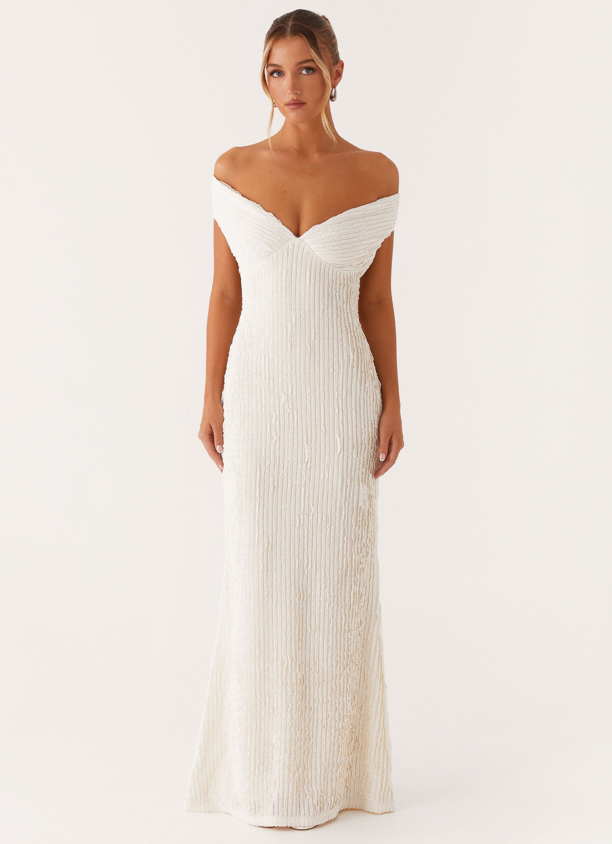 The Chantelle Maxi Dress exudes elegance with its off-shoulder neckline and beautifully ruched underbust design. This flowing silhouette flatters your figure while allowing for comfortable movement, making it perfect for sunset gatherings or special nights out.