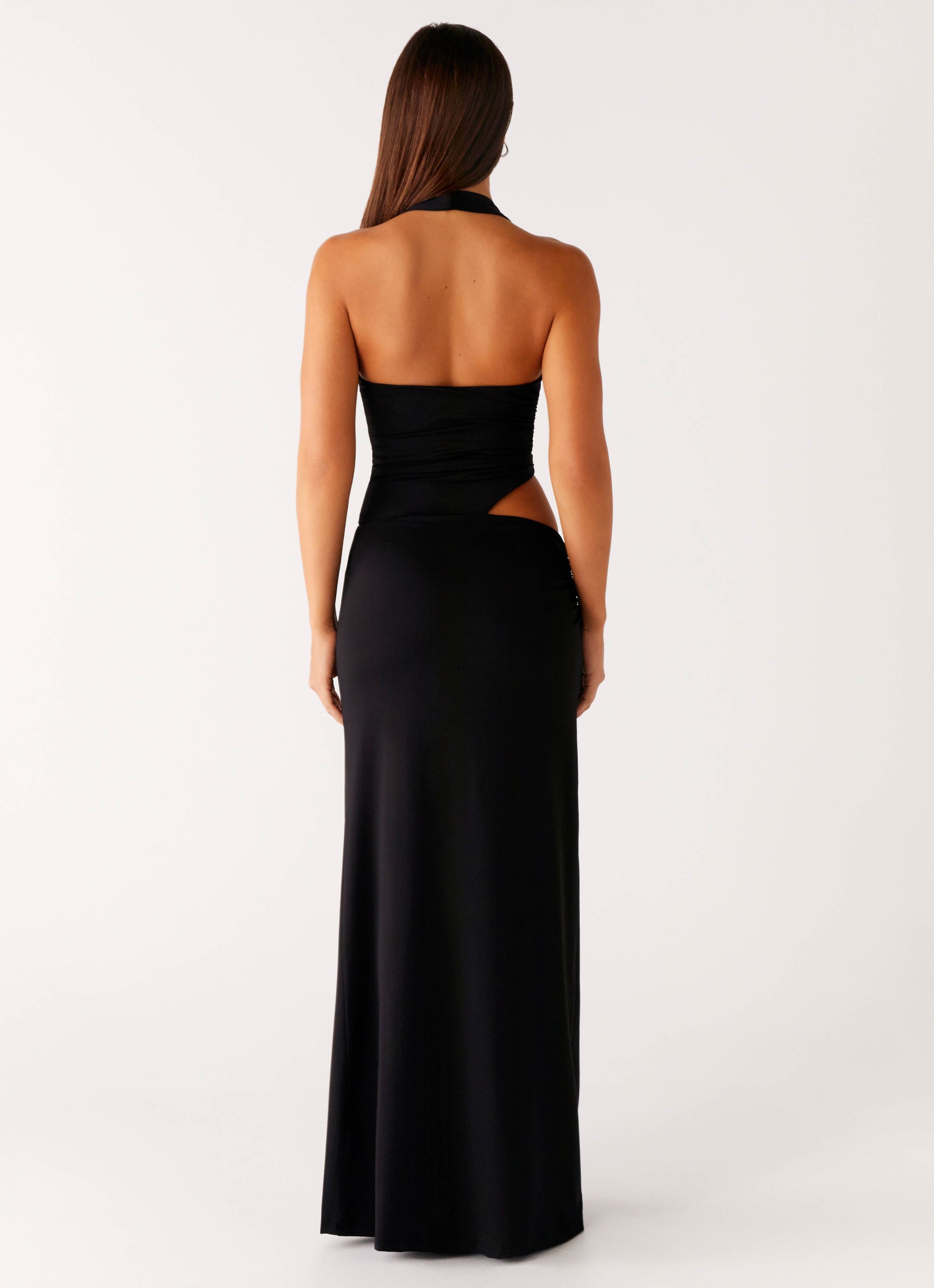 The Chella Maxi Dress is made for main character moments. Featuring a halterneck line with bold eyelet detailing, side cut outs, and a sleek black silhouette, it brings just the right mix of edge and elegance for every after-dark agenda.