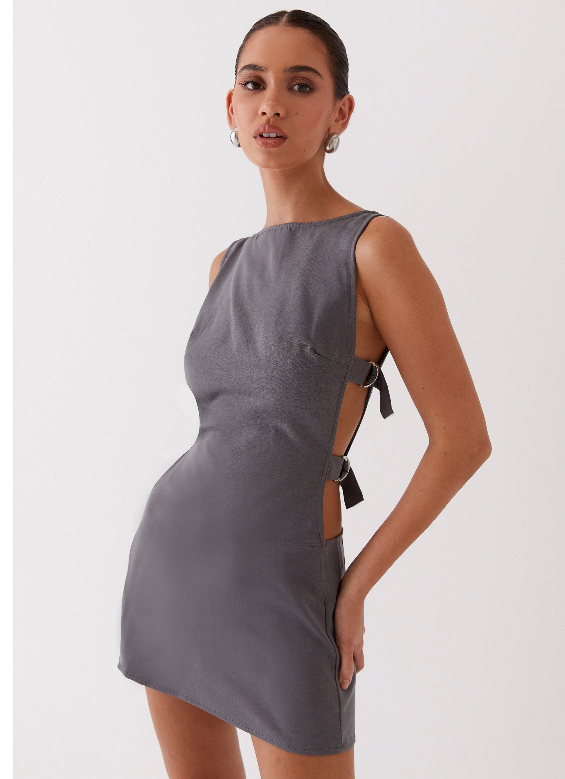 Introducing our Cherish You Buckle Mini Dress, with its open sides and high, wide neckline, this dress captures the essence of twilight allure.