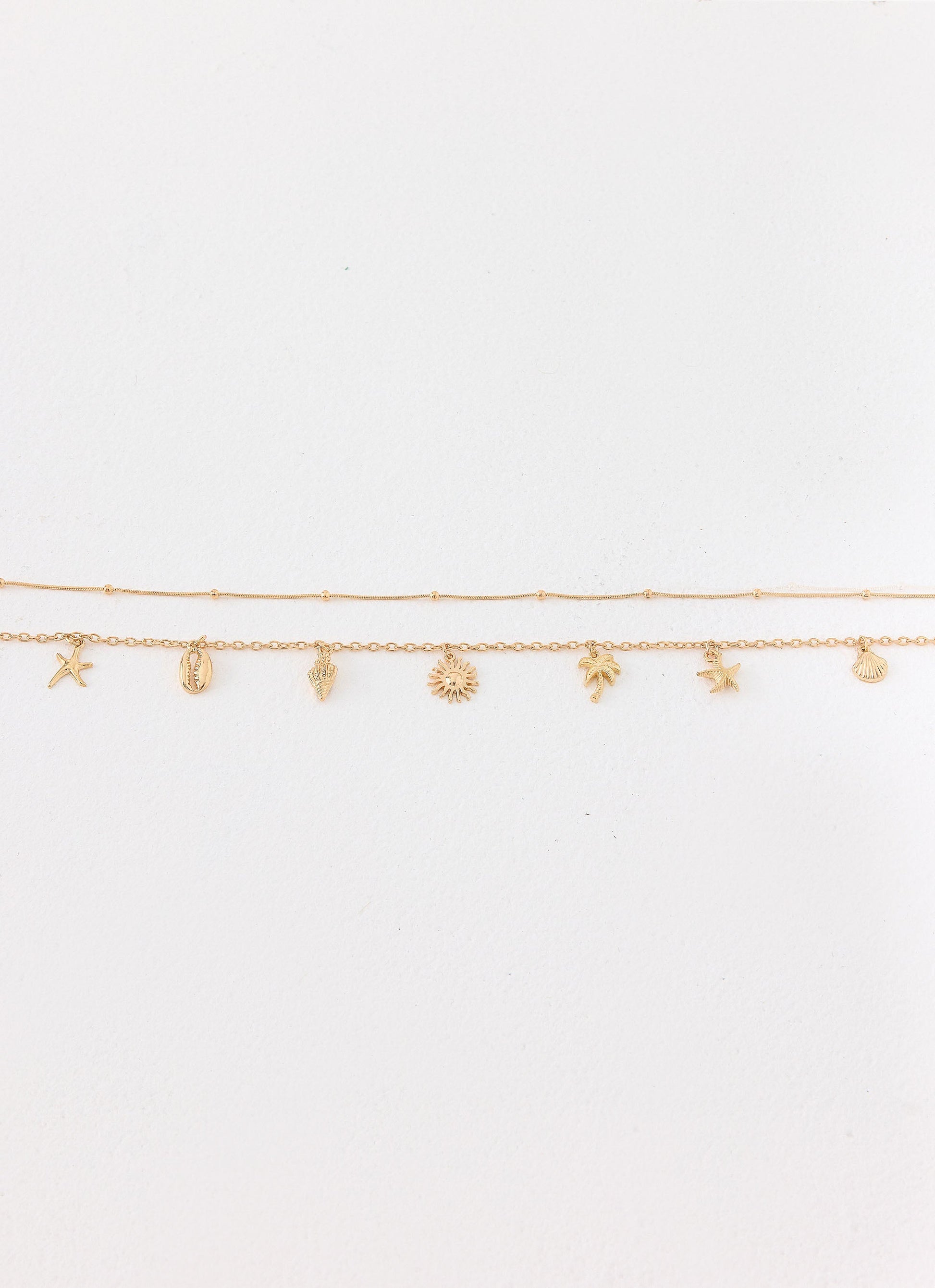 The Ciao Charm Belly Chain adds a glimmering finishing touch to any summer outfit. Designed to sit delicately at the waist, this versatile accessory pairs effortlessly with beachwear, maxi dresses, or evening separates for a subtle, sun-kissed sparkle.