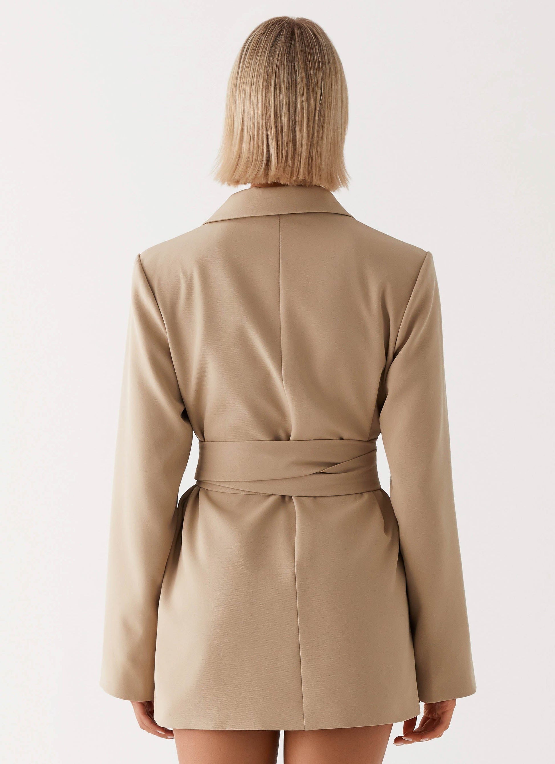 Command attention in the Clara Blazer Dress. With its sophisticated midi length, front flap pockets, and fully lined design, this blazer dress offers a polished look that's perfect for any occasion.