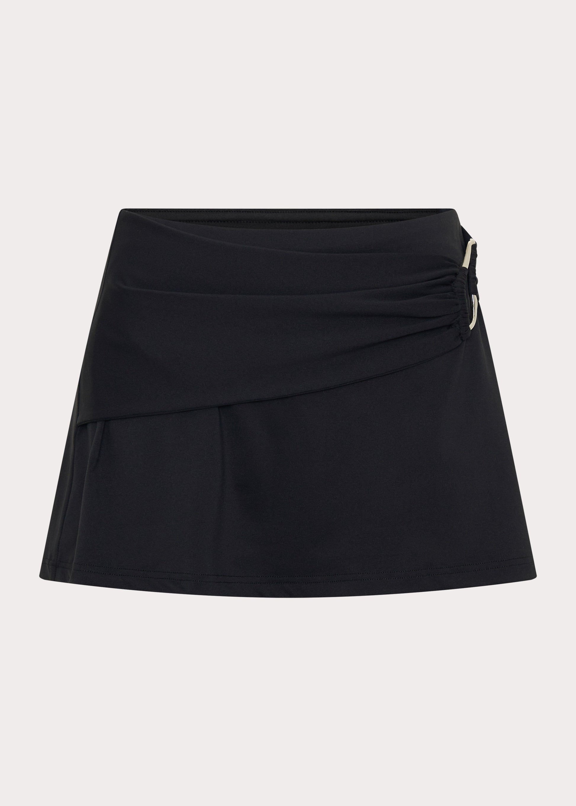 Timeless and sleek, the Collab Mini Skirt in Black is your go-to for effortless style. With a mini length, low-rise fit, and A-line silhouette, this fully lined skirt moves with you, offering both comfort and flair for any occasion.