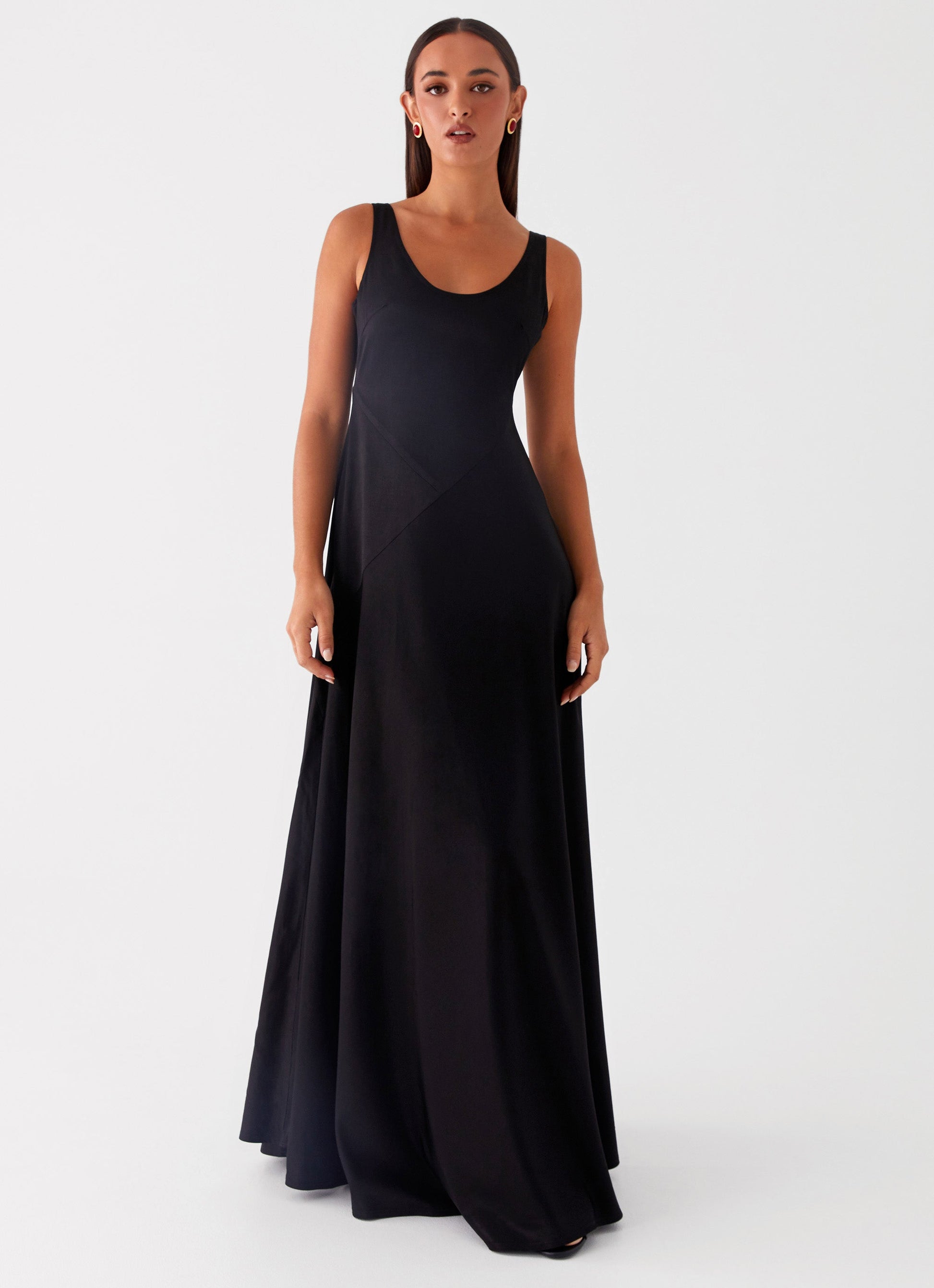 The Cosma Maxi Dress features a rounded neckline and a flattering flare fit that flows elegantly with every step. Fully lined for added comfort and coverage, this dress combines classic style with a graceful silhouette, making it a versatile choice for any occasion.