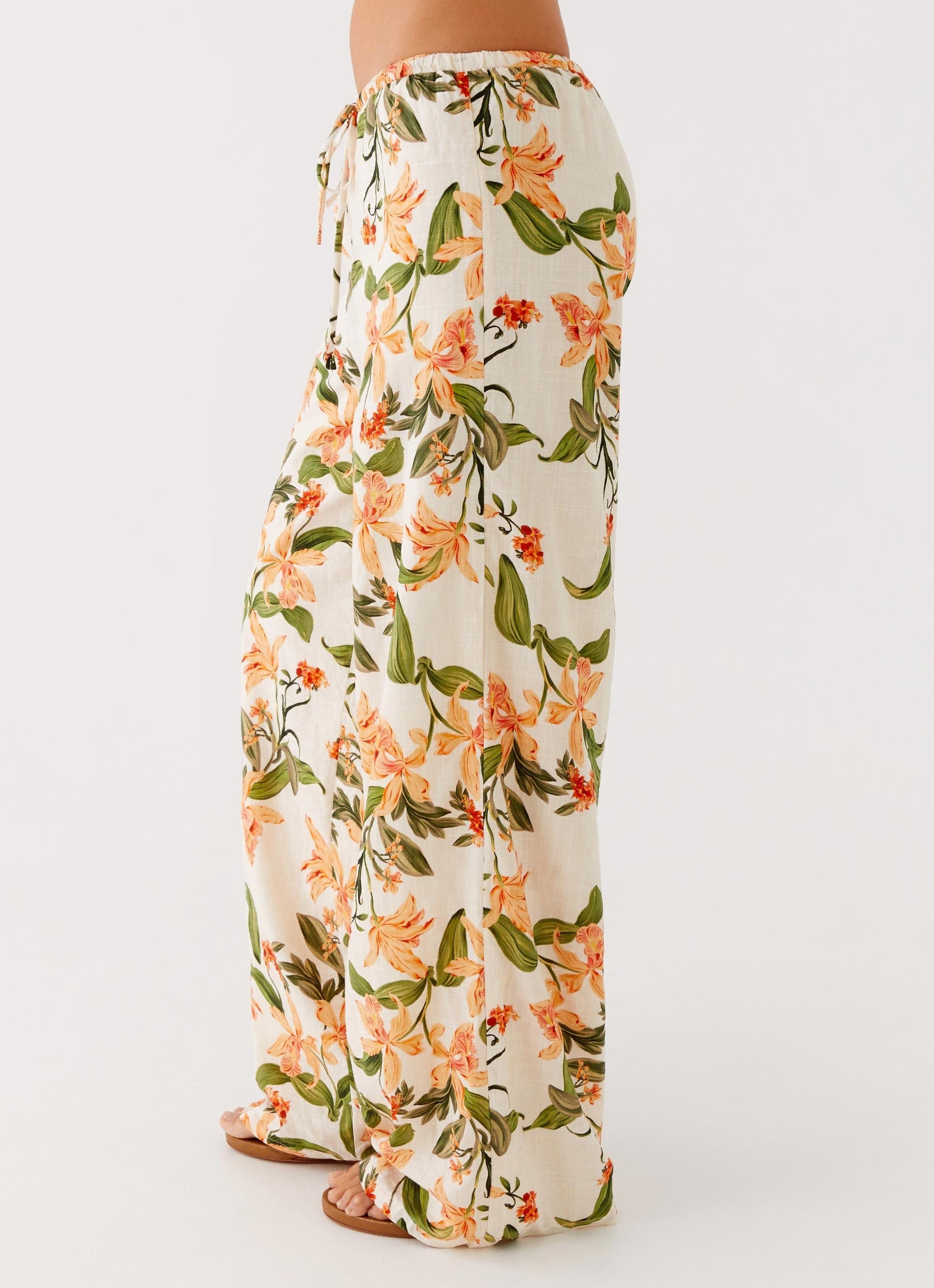 The Dalida Linen Pants bring laid-back luxury in a bold exclusive print. Designed with a low rise, elasticated waistband, and drawstring tie, these fully lined pants are perfect for warm-weather styling.