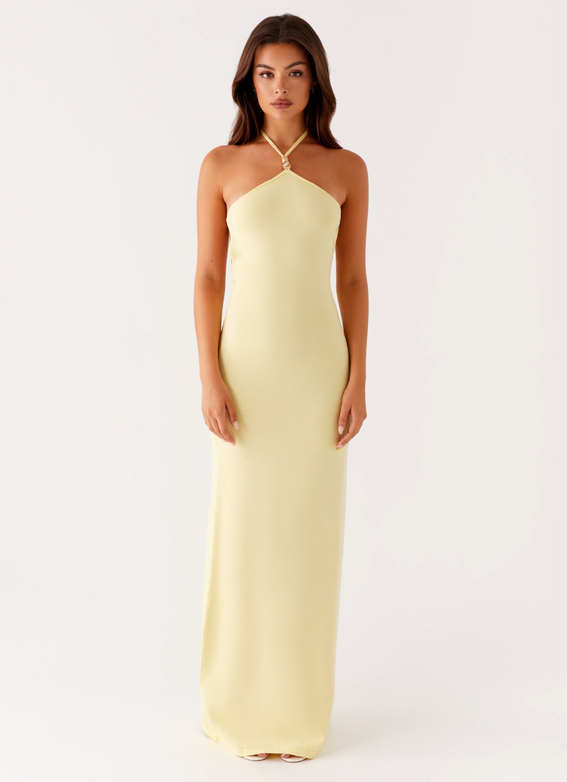 The Elisha Knit Maxi Dress is the perfect combination of comfort and chic elegance. Featuring a halter neckline that beautifully frames the shoulders and an unlined design for a lightweight, breathable feel, this dress offers a relaxed yet flattering fit.