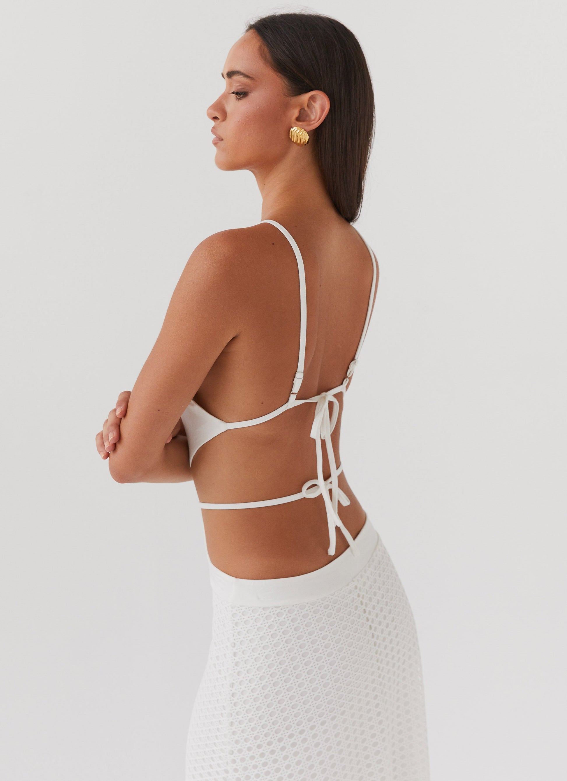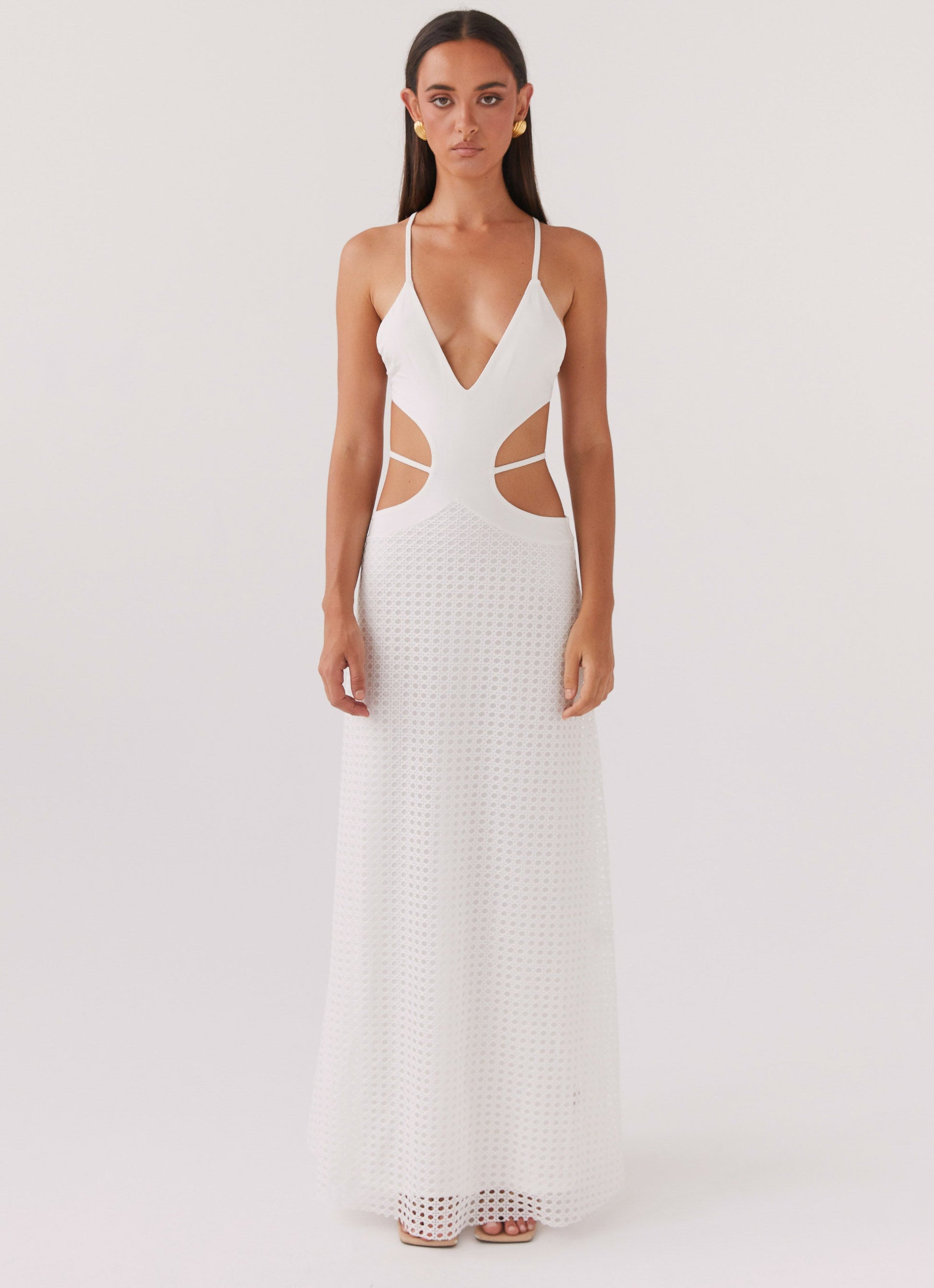 Introducing our Enchanted Melodies Maxi Dress. Featuring a crochet skirt, this dress exudes elegance and sophistication. Perfect for embracing the magic of golden skies, balmy nights, and the chic silhouette of nightclub scenes. Just add heels and let the night enchant you.