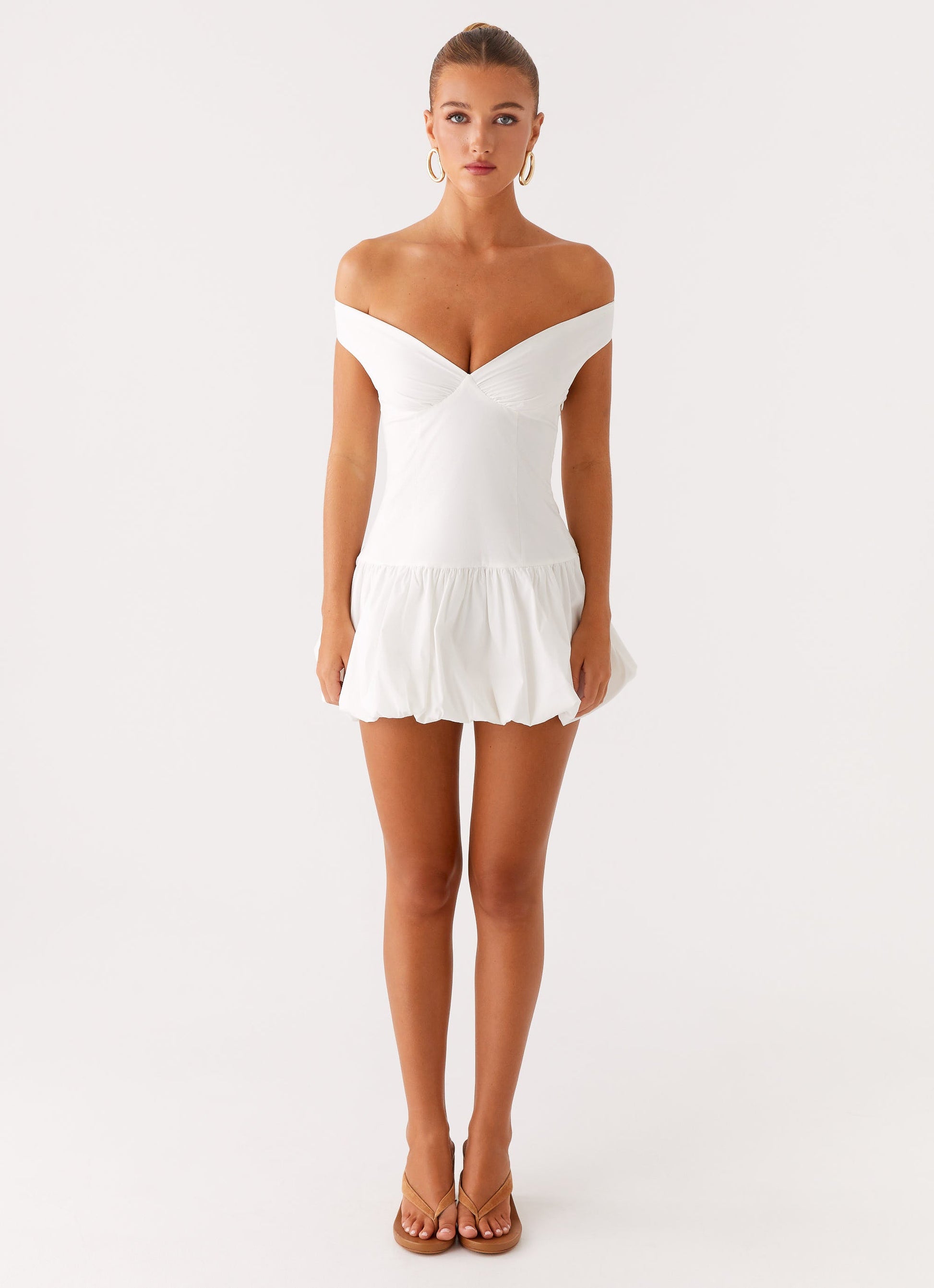 The Endless Romance Off Shoulder Mini Dress features a romantic off-shoulder neckline and a playful bubble skirt, creating a fun and flirty silhouette. Perfect for those summer nights or a night out, this dress adds a touch of effortless charm and carefree elegance to your wardrobe.