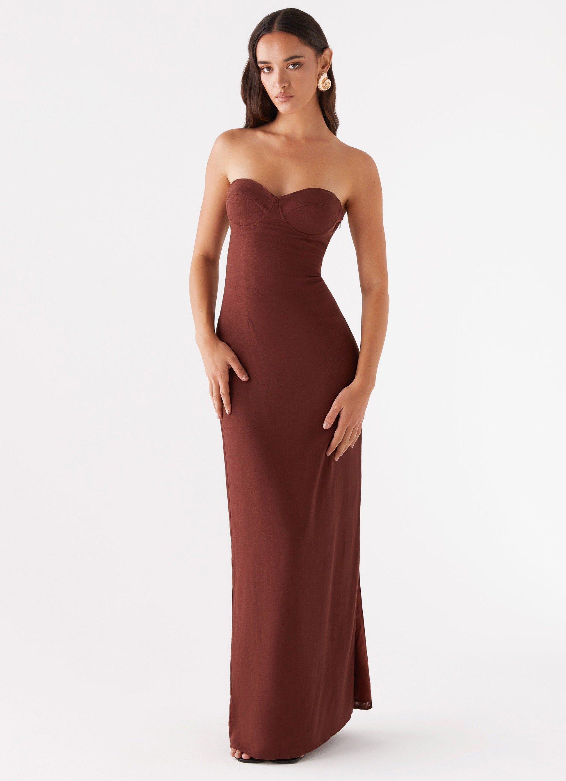 Elevate your evening ensemble with the Esra Strapless Maxi Dress. Featuring a chic halterneckline with a tie at the neck and a daring keyhole cutout, this dress combines elegance with a touch of intrigue. Ideal for those golden-hour moments and beyond.