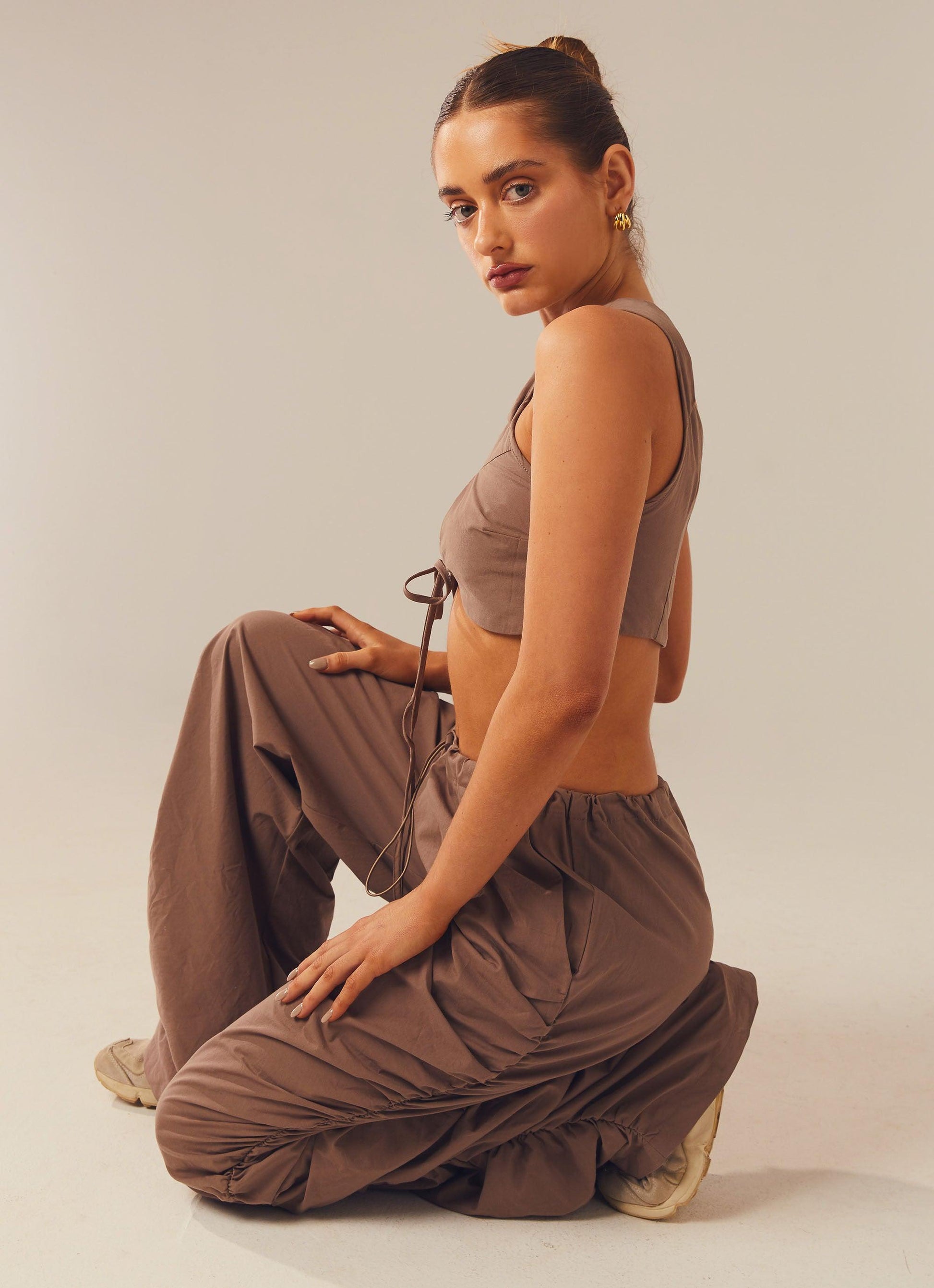 Neutral vibes! Our Fluorescent Nights Pants feature an elastic waistband and toggle drawstring, ruching down the legs and 2 front pockets. Pair with our Next In Line Crop Top.