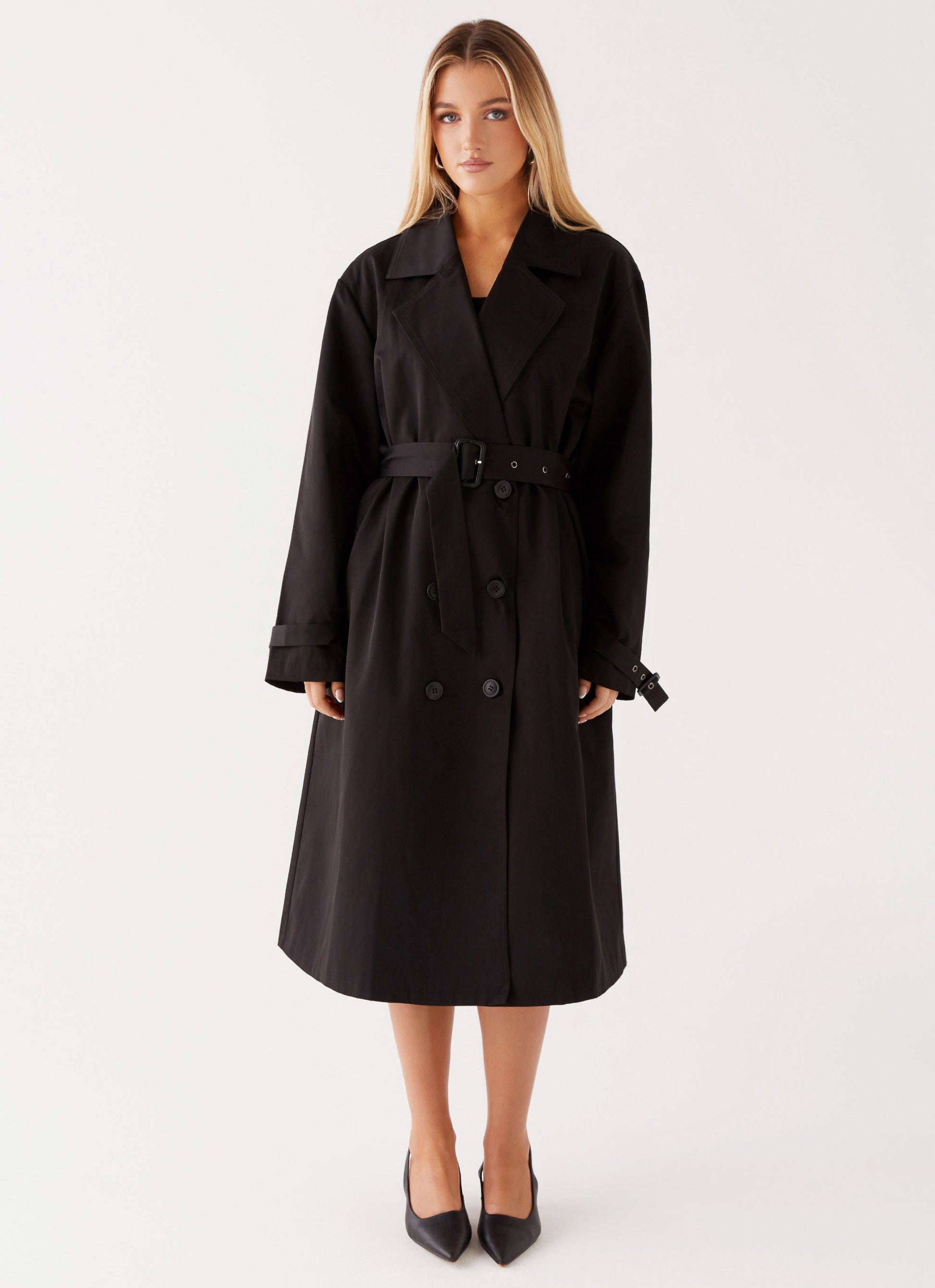 Embrace the evening's allure in the Frenchy Oversized Trench Coat. With its collared neckline and double-button front, this fully lined coat exudes timeless sophistication. Perfect for transitioning from sunset to sundown, it adds effortless elegance to any nighttime look.