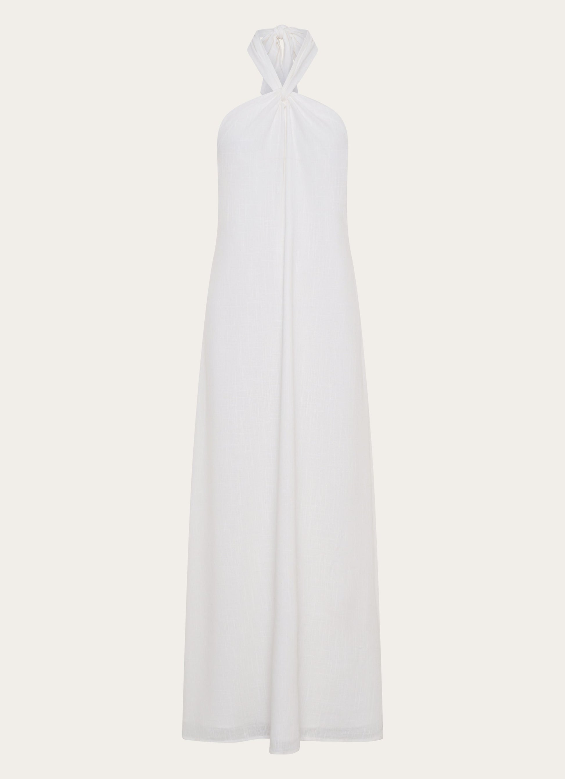 Embrace the essence of summer nights in the Golden Child Linen Maxi Dress. With its elegant halterneck design and stunning open back, this fully lined dress flows beautifully, capturing the light with every move. Perfect for balmy evenings and sunset gatherings, it’s a must-have for your wardrobe.