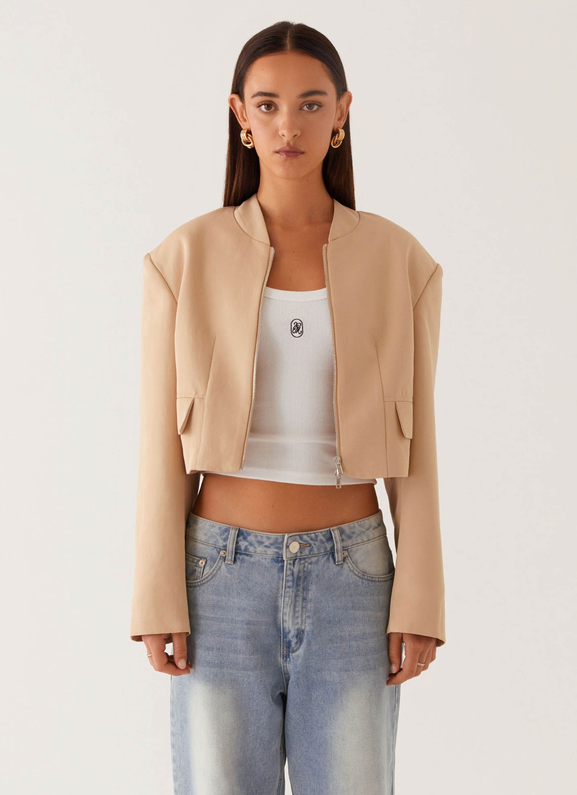 Embrace the after-dark allure with the Halyn Cropped Bomber Jacket. Featuring a sleek rounded neckline and twin front flap pockets, this fully lined jacket offers a structured yet edgy vibe. Perfectly cropped for golden-hour adventures, it’s your go-to for a statement-making silhouette.