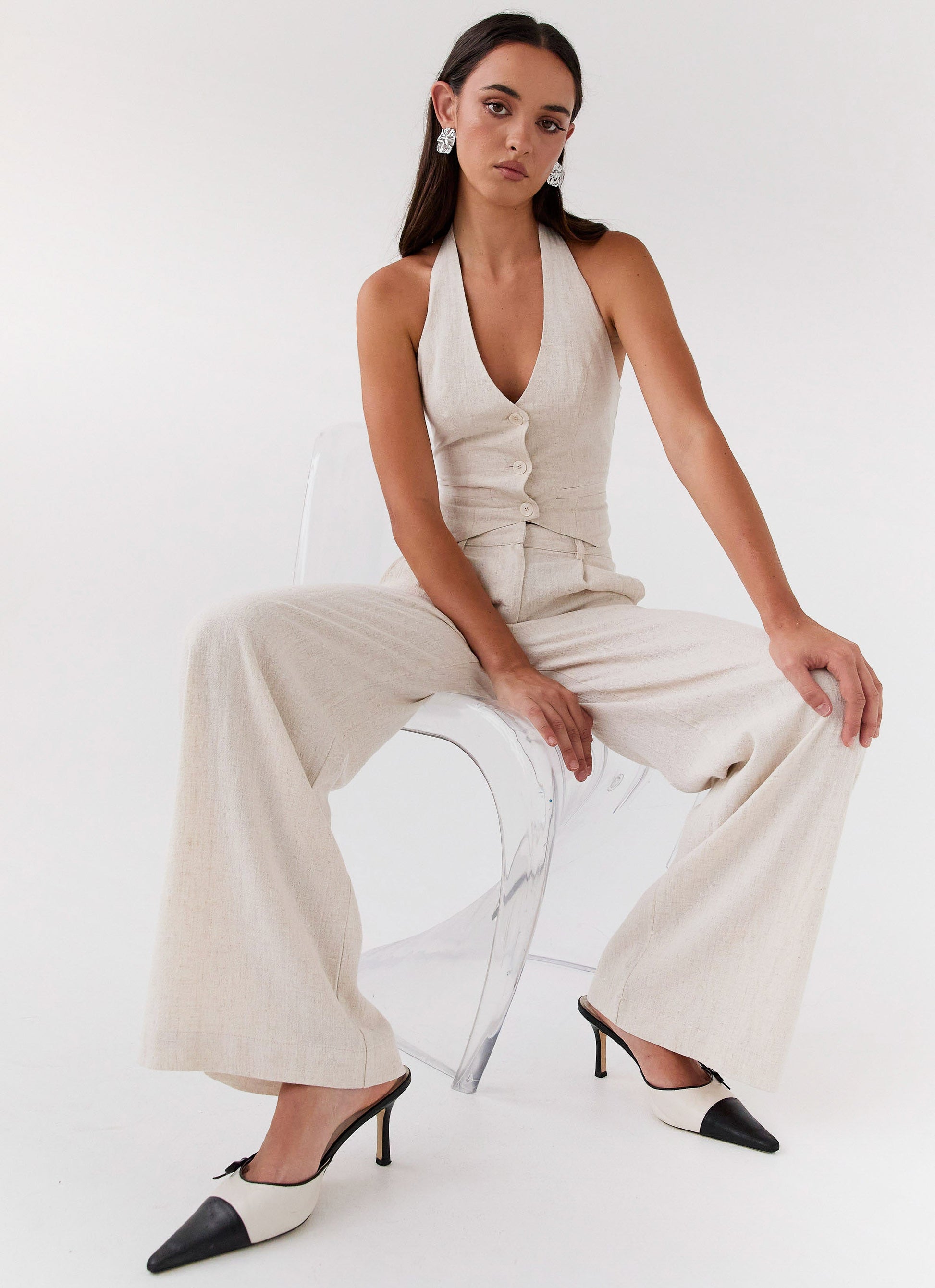 Introducing our Heatwave Linen Wide Leg Pants – a chic staple for your evening adventures. Crafted for ultimate versatility, these pants look best by pairing them with our Heatwave Linen Apron Top. Perfect for embracing golden skies, balmy nights.