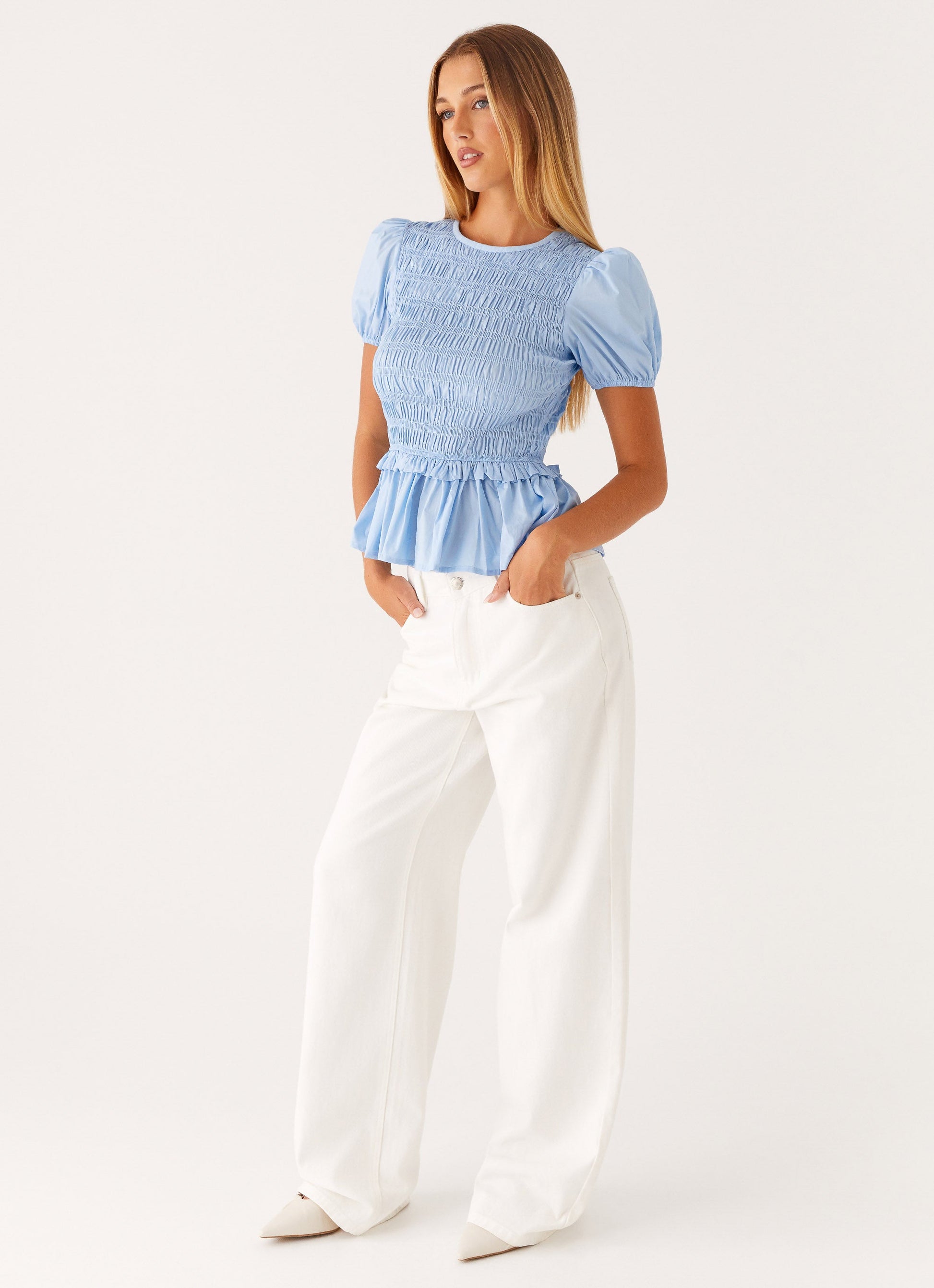 Izzy Shirred Top – A perfect blend of comfort and style. The crew neckline and shirred bodice create a flattering, fitted look, while the flared hemline adds a playful touch. Ideal for creating effortless elegance, day or night.