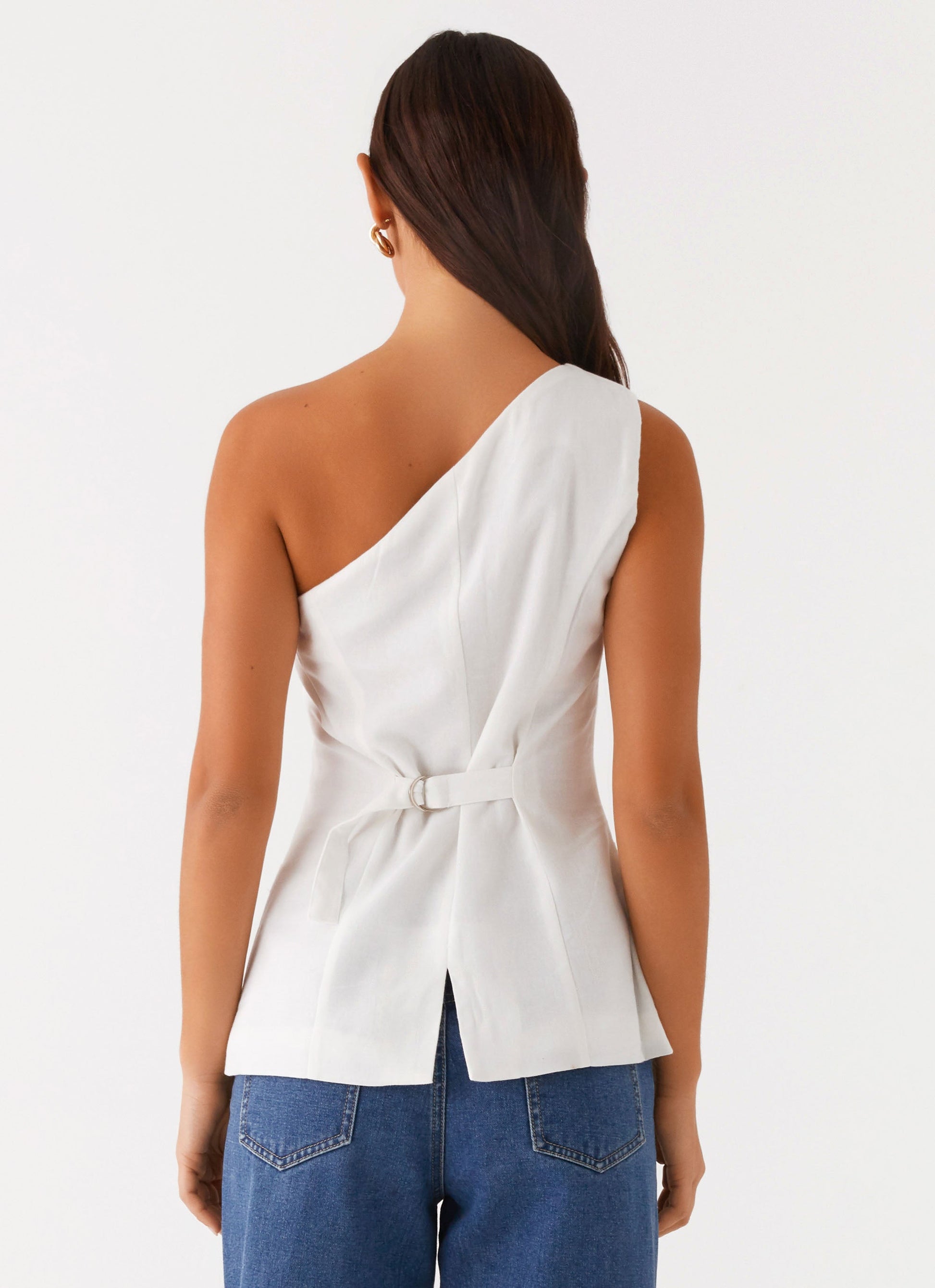 Elevate your style with the Jordy Linen Pocket Vest, featuring a trendy off-shoulder design and front button closure for versatile styling. Fully lined for comfort, this vest adds a chic layer to any outfit.
