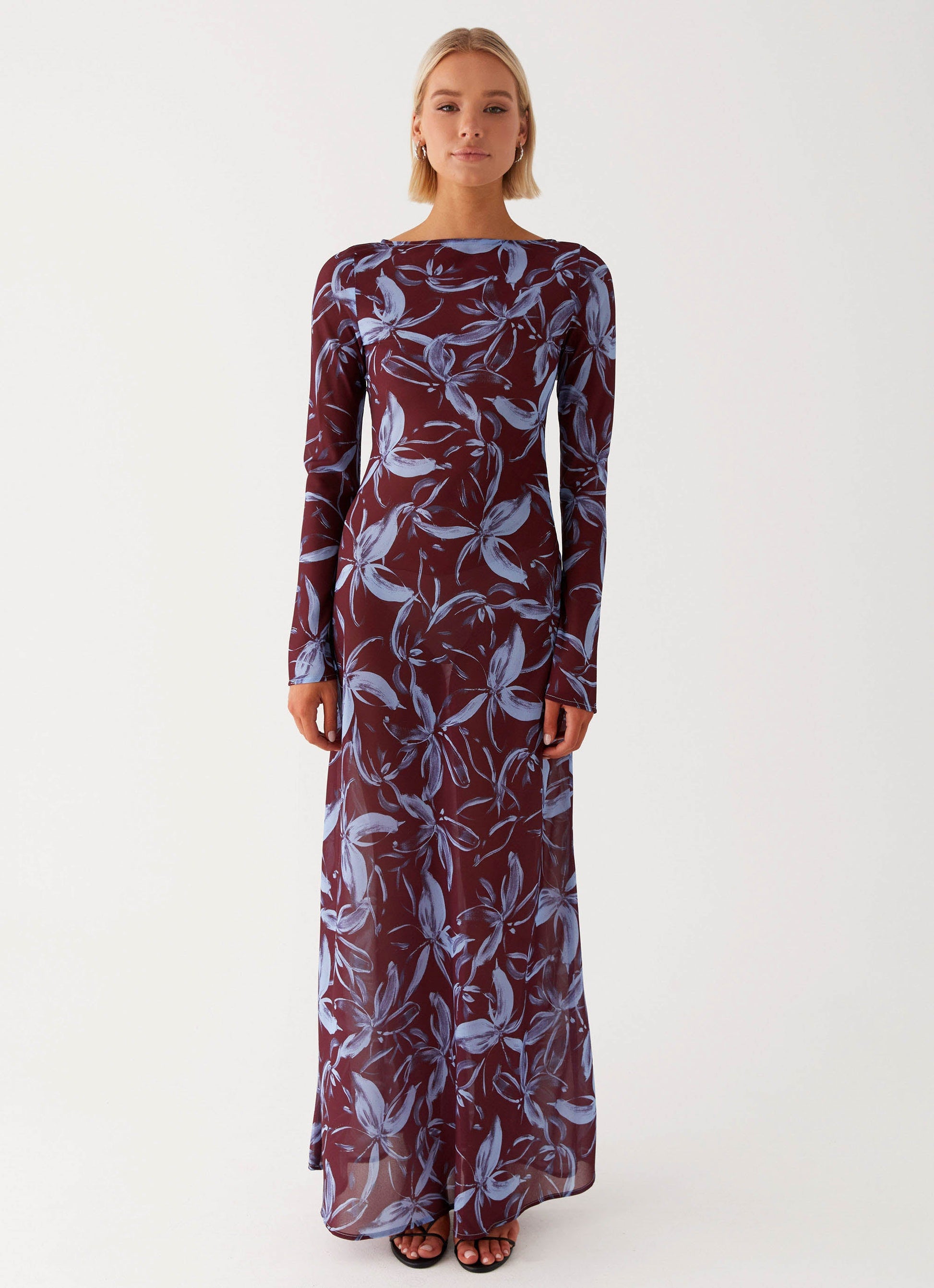 Introducing the Lorde Maxi Dress. This design showcases a high rounded neckline and long sleeves in a semi-sheer fabric, blending sophistication with a touch of allure. Perfect for making a graceful entrance at any evening event.
