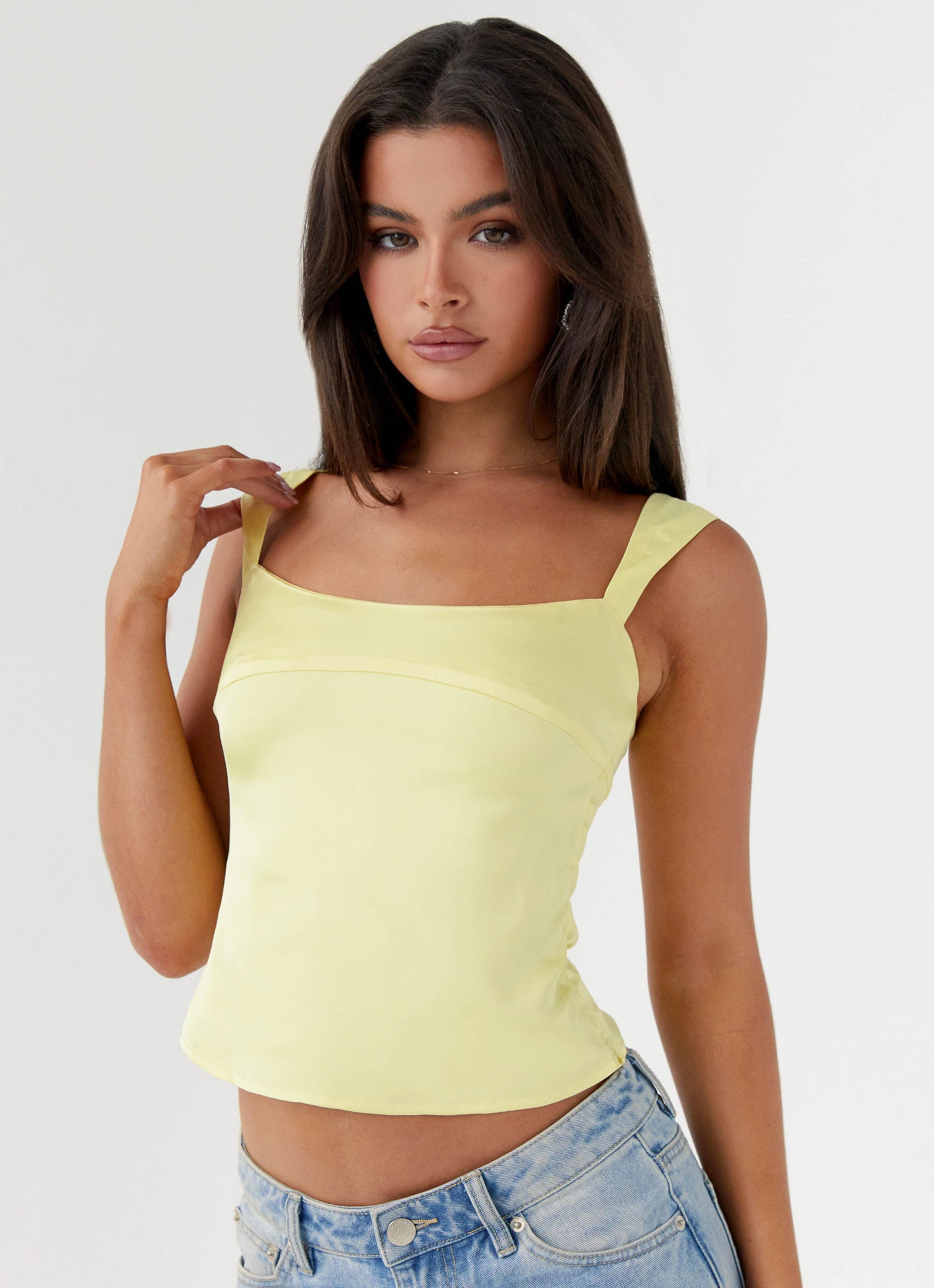 Introducing the Lylah Satin Top. This top is a statement of evening chic with its vibrant yellow hue and sleek square neckline that exudes sophistication with a touch of vibrancy. Elevate your nighttime ensemble with this captivating piece, epitomising the essence of sunset to sundown in every graceful silhouette.