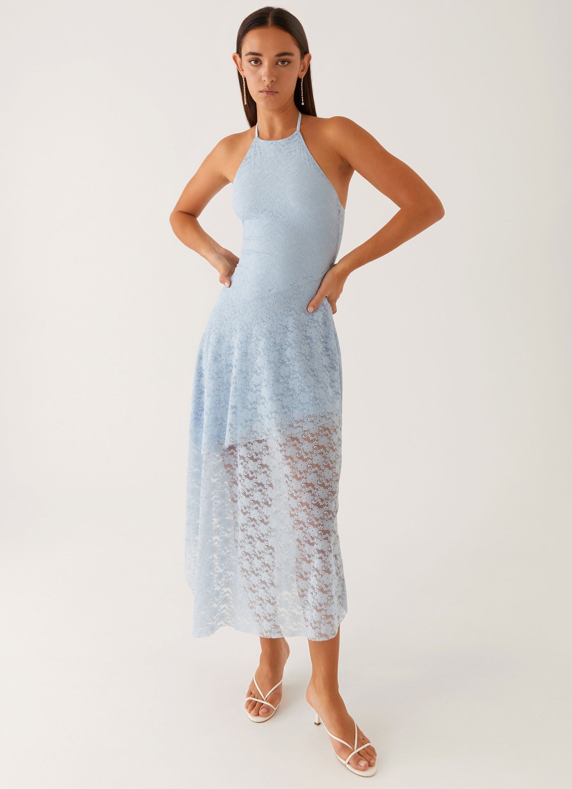 The Lyndal lace midi dress is a bold yet elegant choice for a night to remember. With a halter neckline, open back, and thin straps, it exudes sophistication and daring allure. The intricate lace design adds a touch of romance, making it perfect for evenings that capture attention and steal hearts.