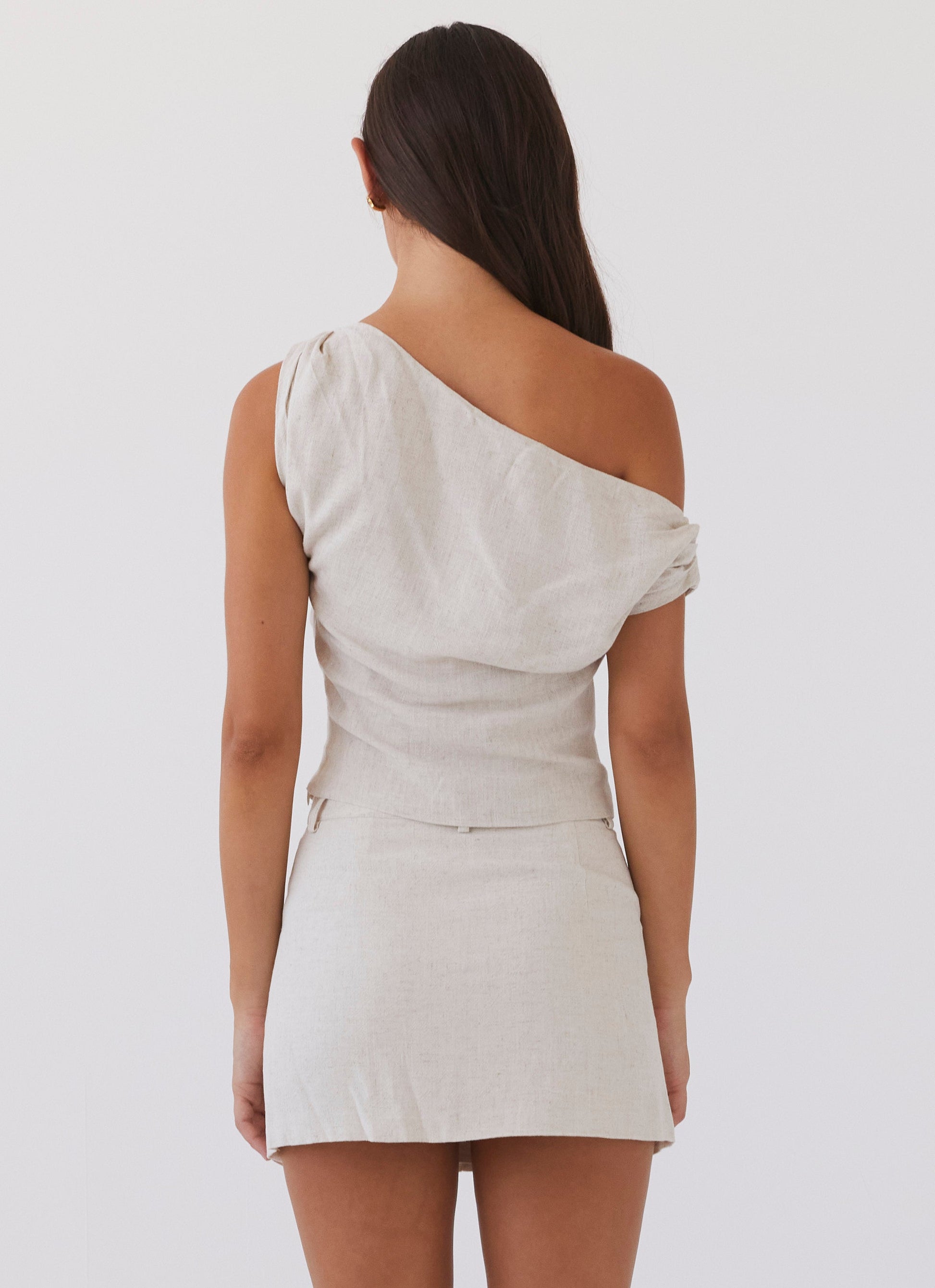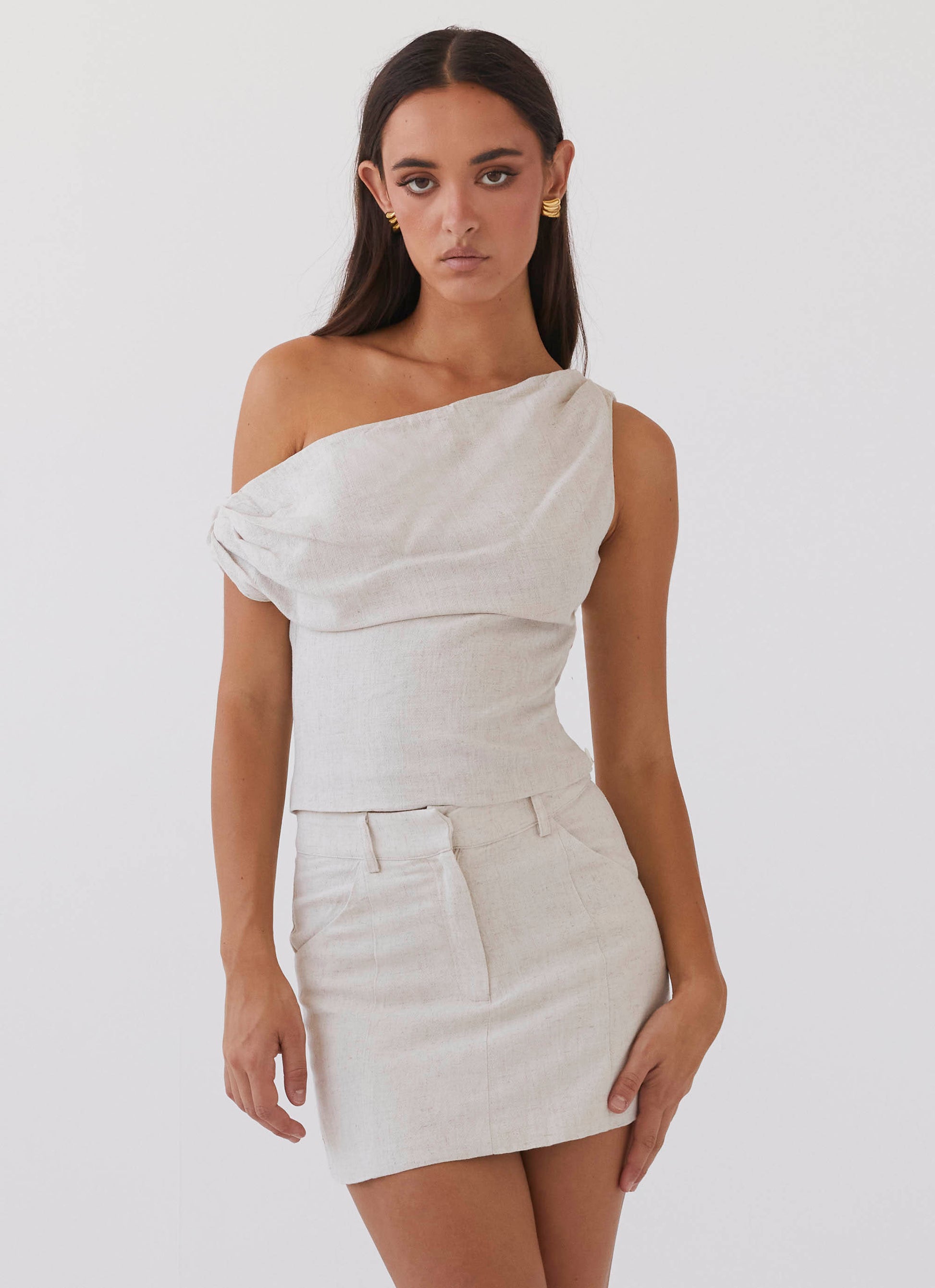 The Marissa Linen Mini Skirt is made from a high quality linen and cotton blend. Featuring a natural and neutral look with twin hip pockets and mid rise fit. Pair with Marissa Linen One Shoulder Top.