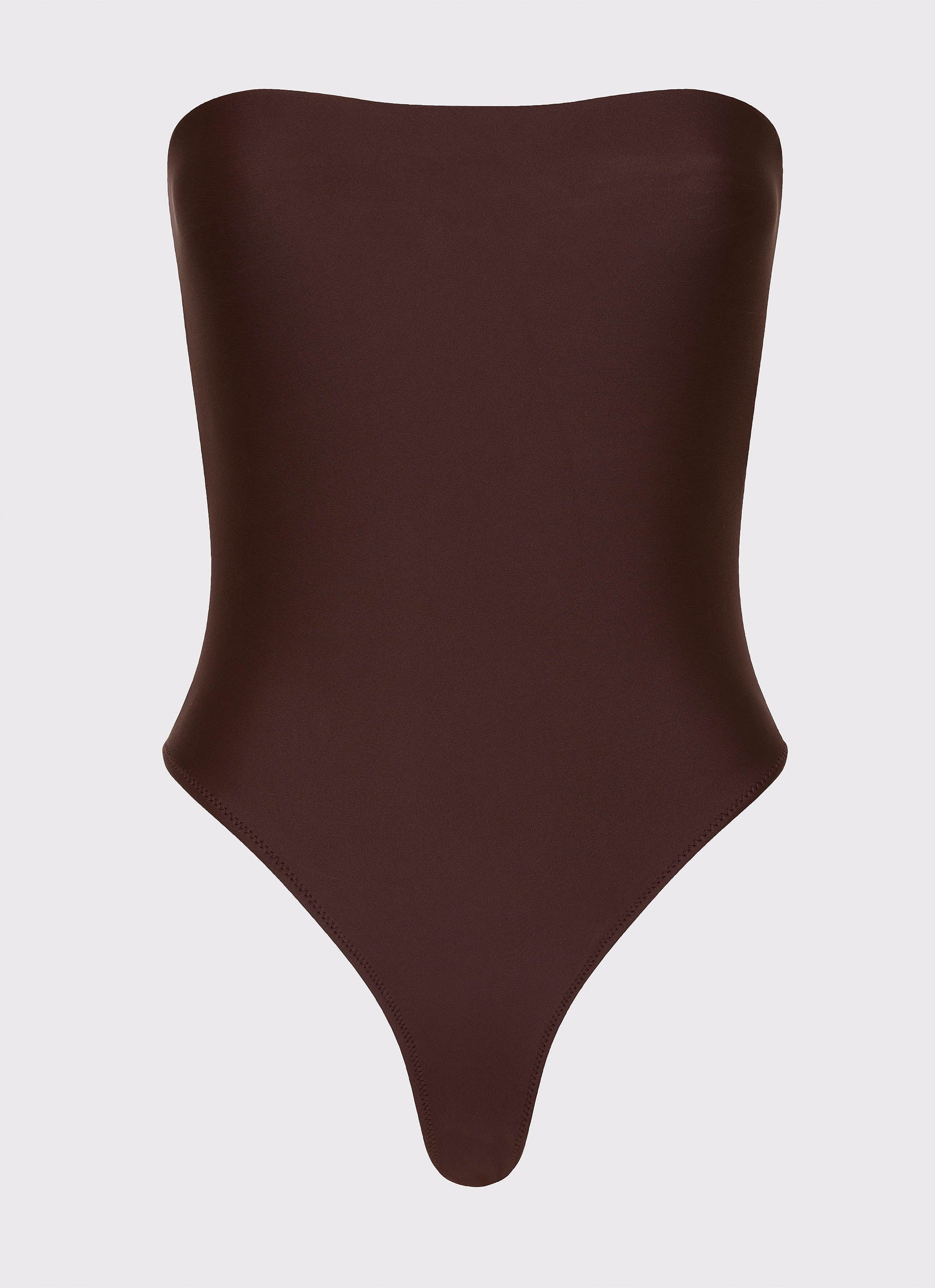 Elevate your swimwear game with the Maxine Strapless One-Piece Swimsuit. Featuring a sleek strapless neckline, this swimsuit is fully lined for a smooth fit and crafted from stretch material for comfort and flexibility. Perfect for making a statement by the pool or at the beach.