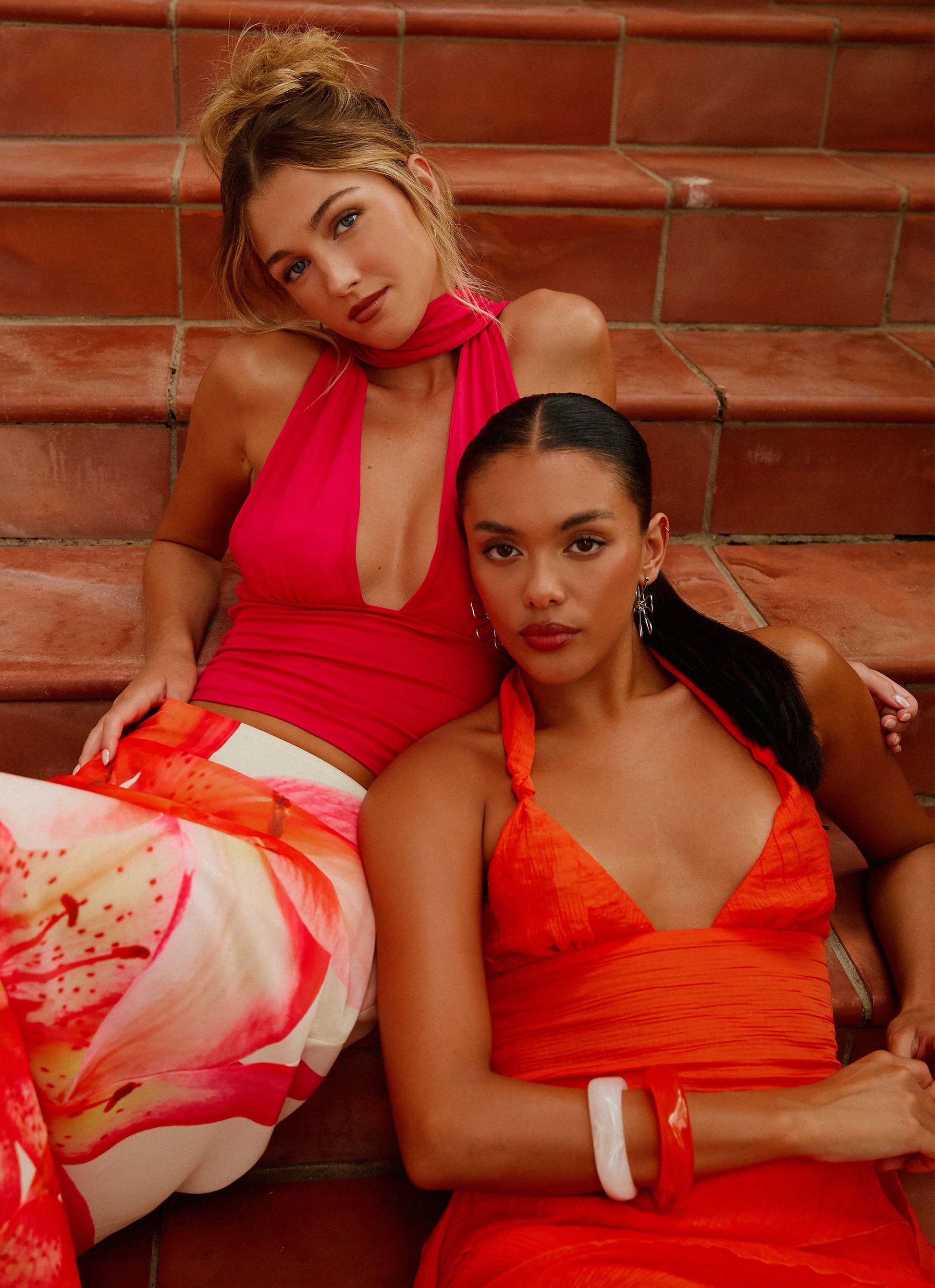 Milos Scarf Halter Neck Top - Fuchsia Pink