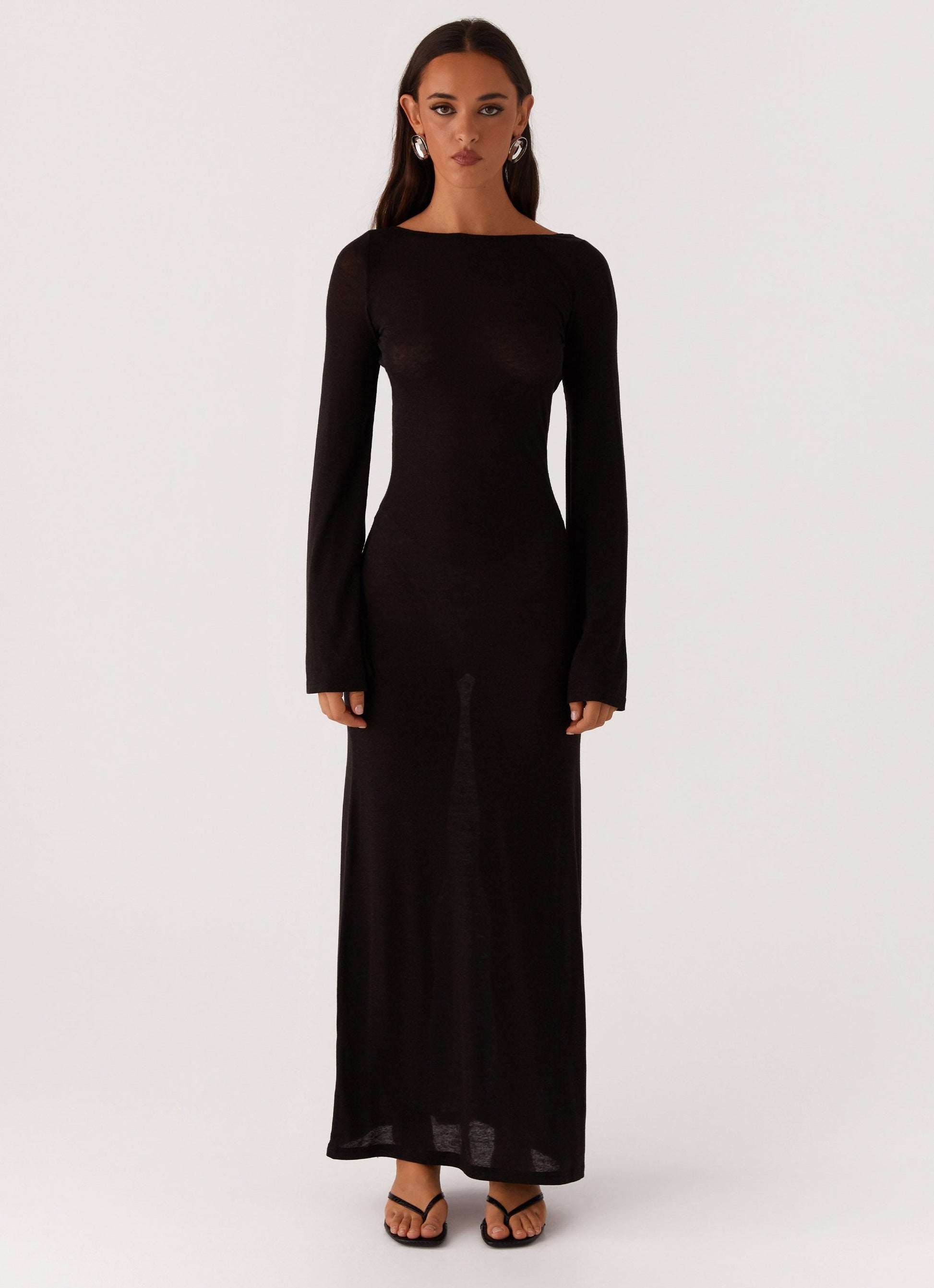 The Olivia Long Sleeve Maxi Dress exudes effortless elegance. Featuring a flattering boat neckline and soft stretch knit, this unlined piece hugs your curves for a chic, sleek silhouette perfect for evening wear.
