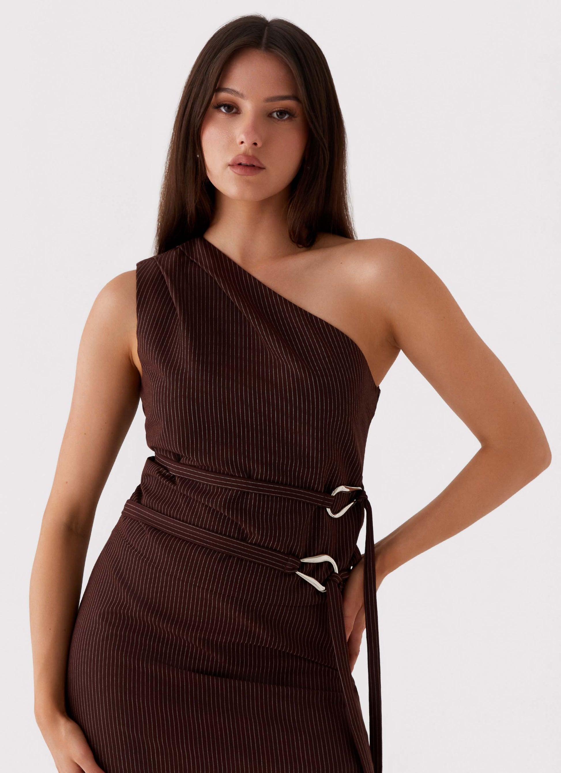 Make a statement in the Orla One Shoulder Top. Featuring an off-shoulder design, exclusive Peppermayo print, and metal embellishment on the waistband, this top is perfect for those golden hour moments and nightlife escapades.