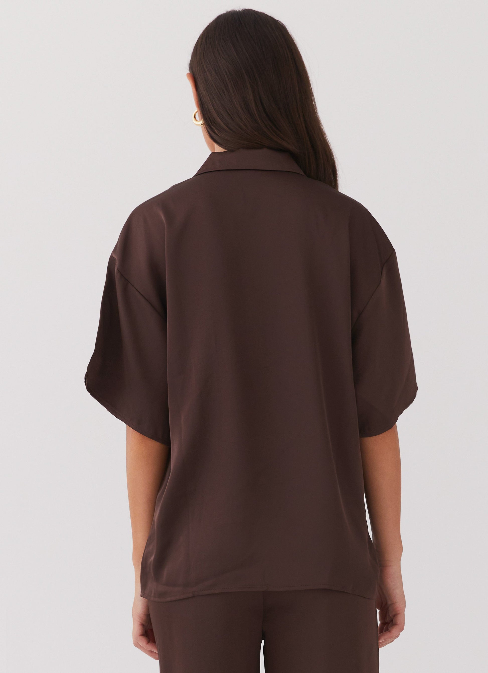 Introducing the Palm Cove Satin Shirt – collared neckline, oversized short sleeves, and a relaxed fit for effortless style. Pair with our Palm Cove Satin Pants for an elevated essentials wardrobe.