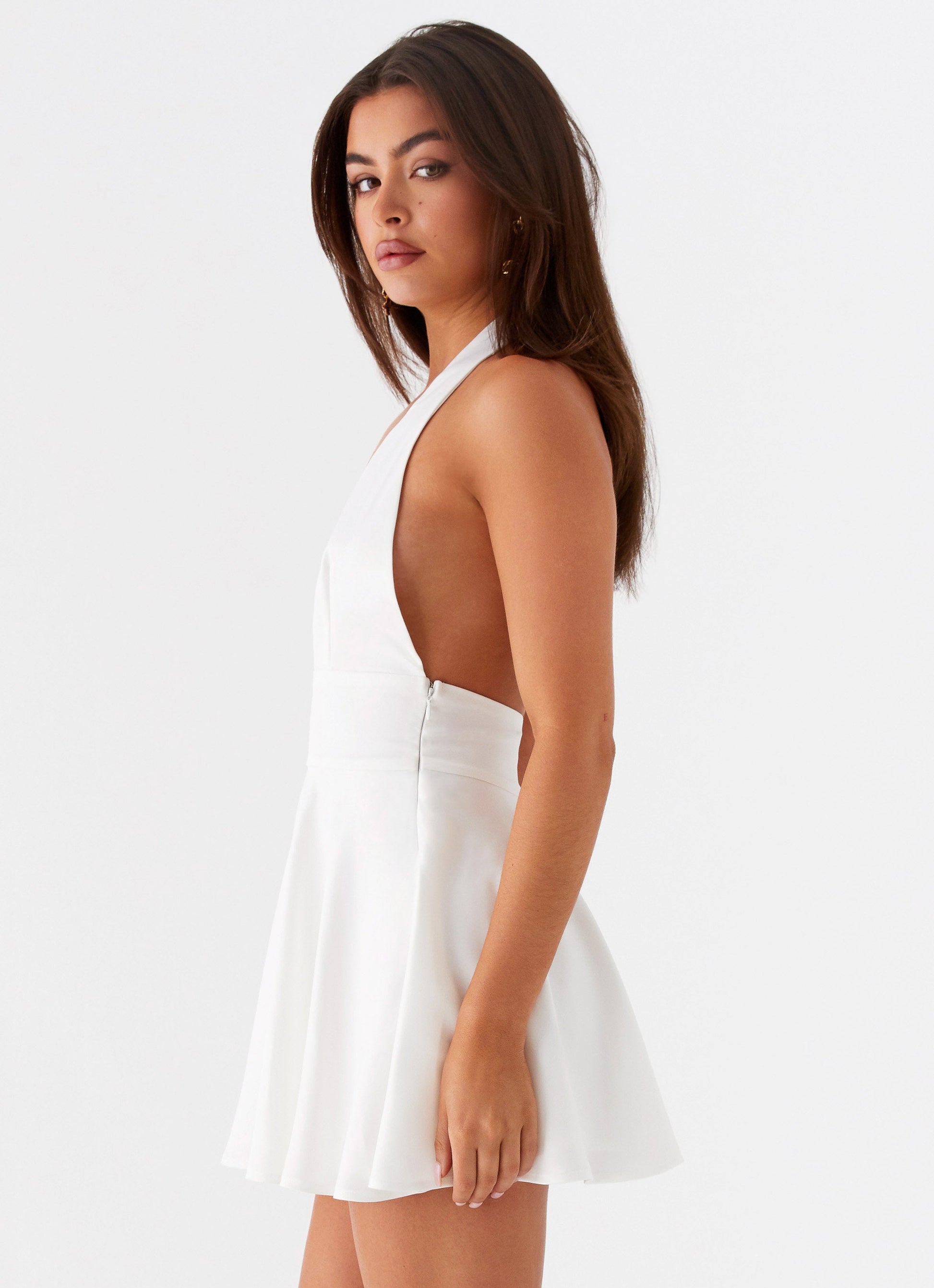Step into the night with the Peppermint Mini Dress. Featuring a playful V neckline, a charming sash tie at the neck, and a daring open back, it's designed for those who savor moonlit moments and the vibrant pulse of the evening.