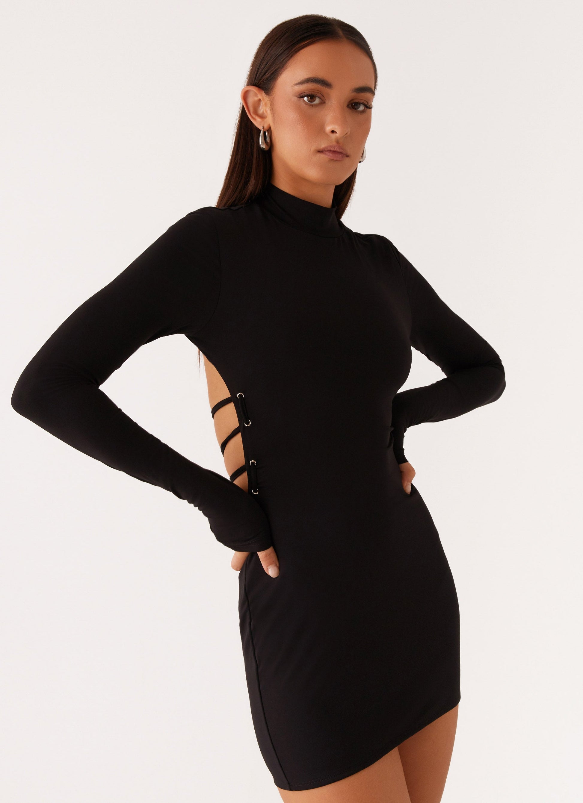 The Raven Long Sleeve Mini Dress is all about sleek sophistication. Featuring a high neckline and long fitted sleeves, it offers a chic, structured look. The open back adds an unexpected touch of allure, making this dress perfect for those who want to turn heads with style and confidence.