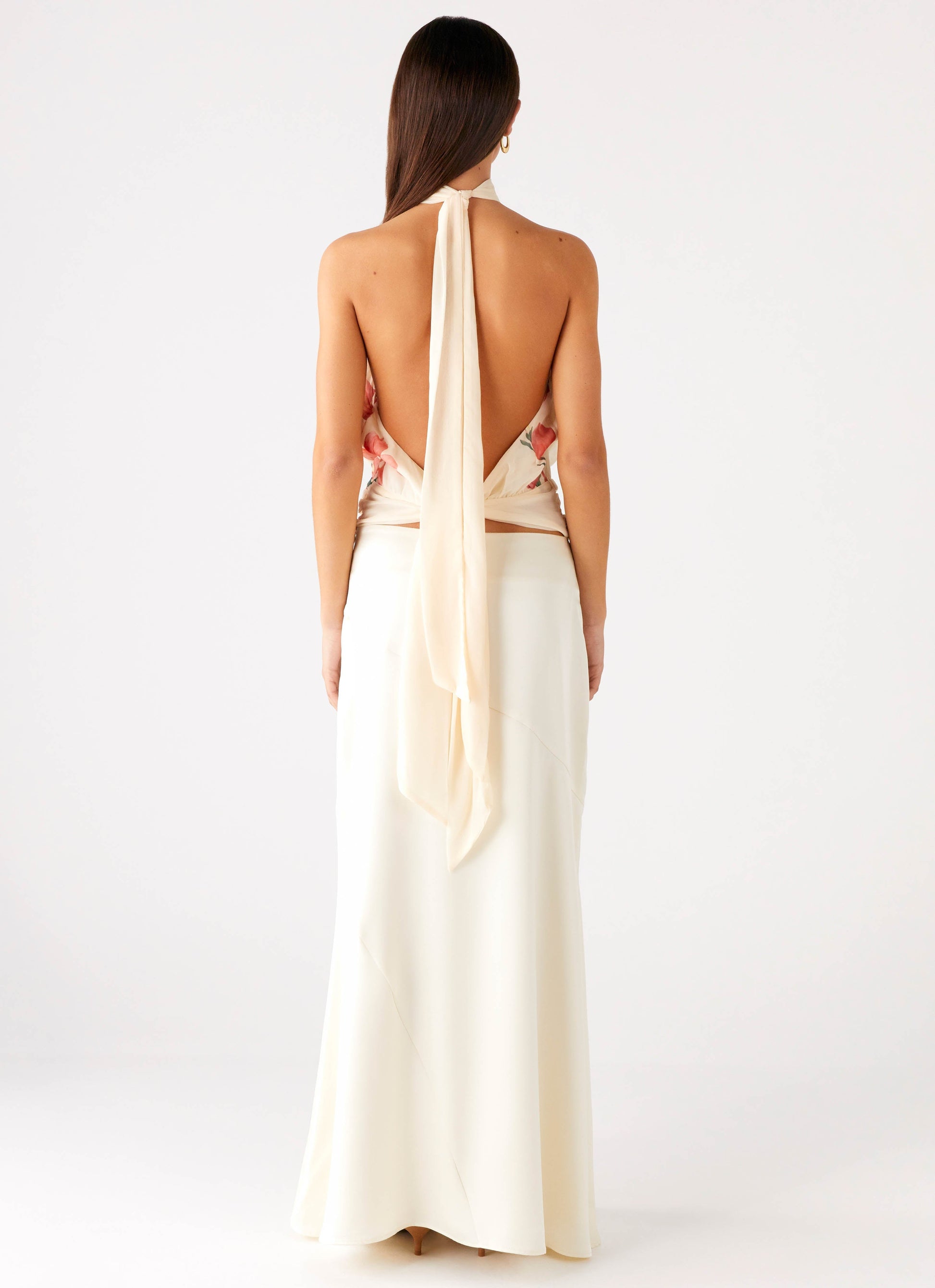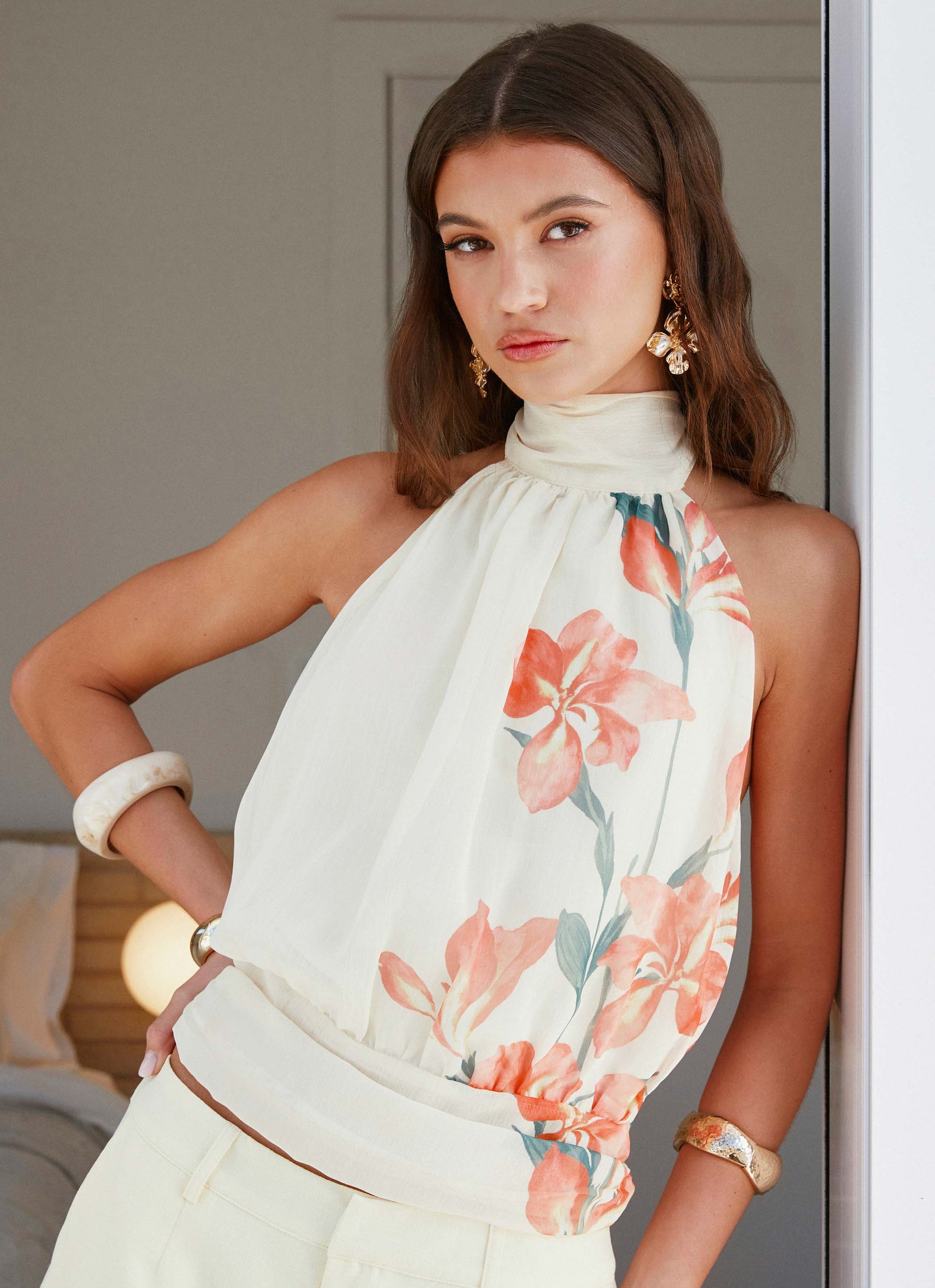 The Romelia Halter Top comes alive under golden skies with its halter neckline and thick neck tie strap. Crafted from textured fabric and fully lined for a smooth finish, this open-back top features a back tie and exclusive print.