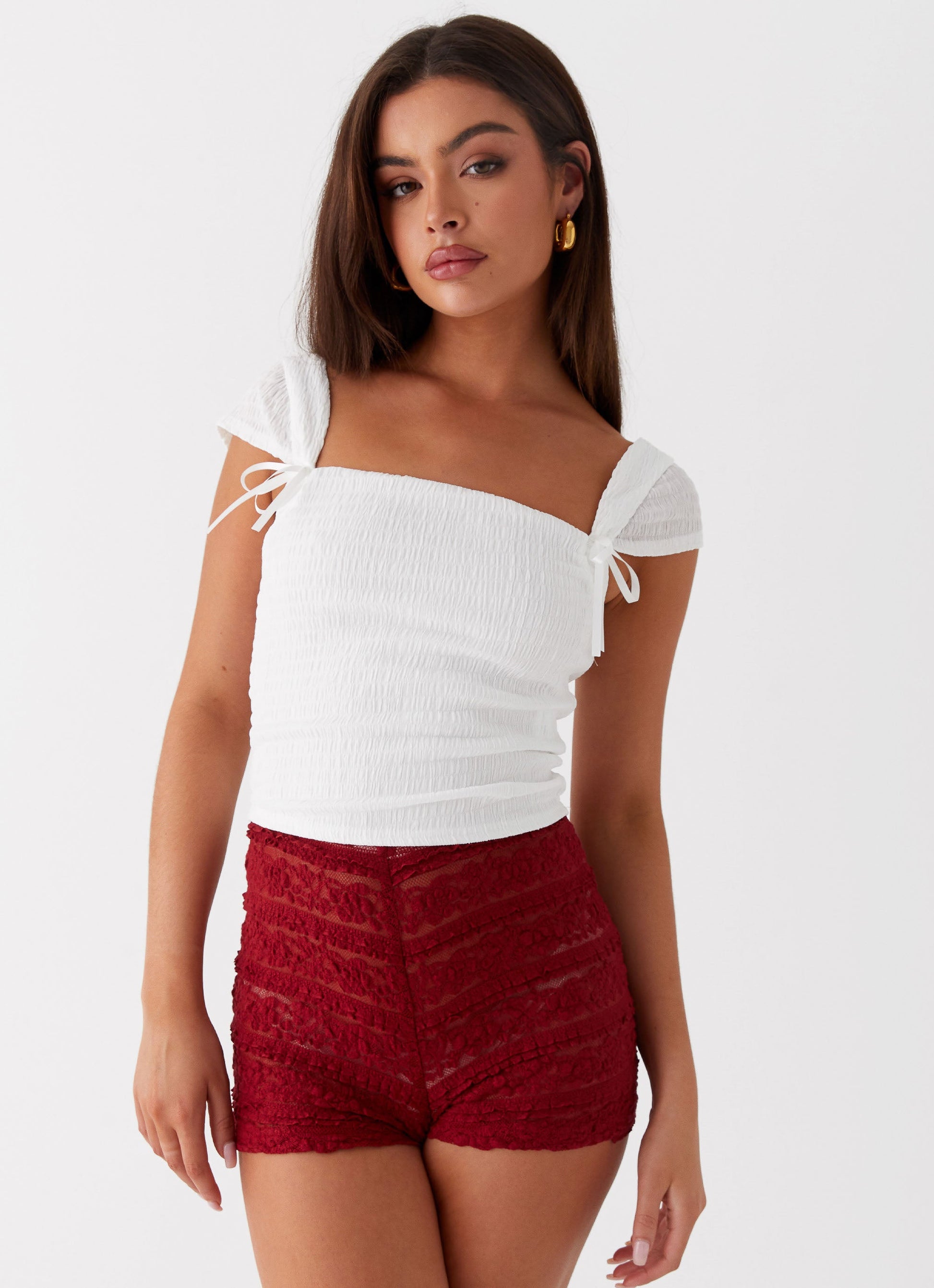 Rosalee Knit Bow Top - White