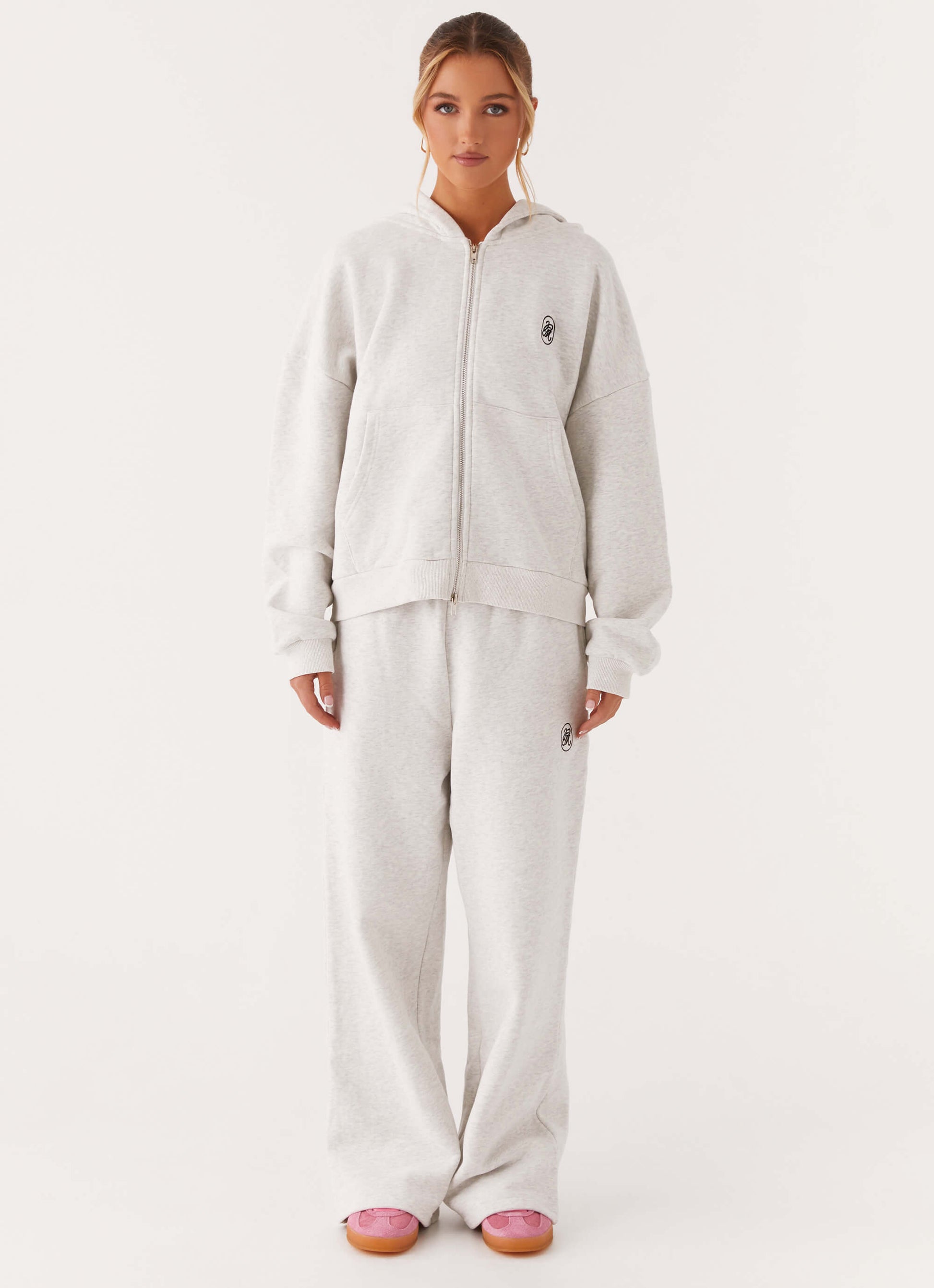 Signature Double Zip Up Hoodie - Grey