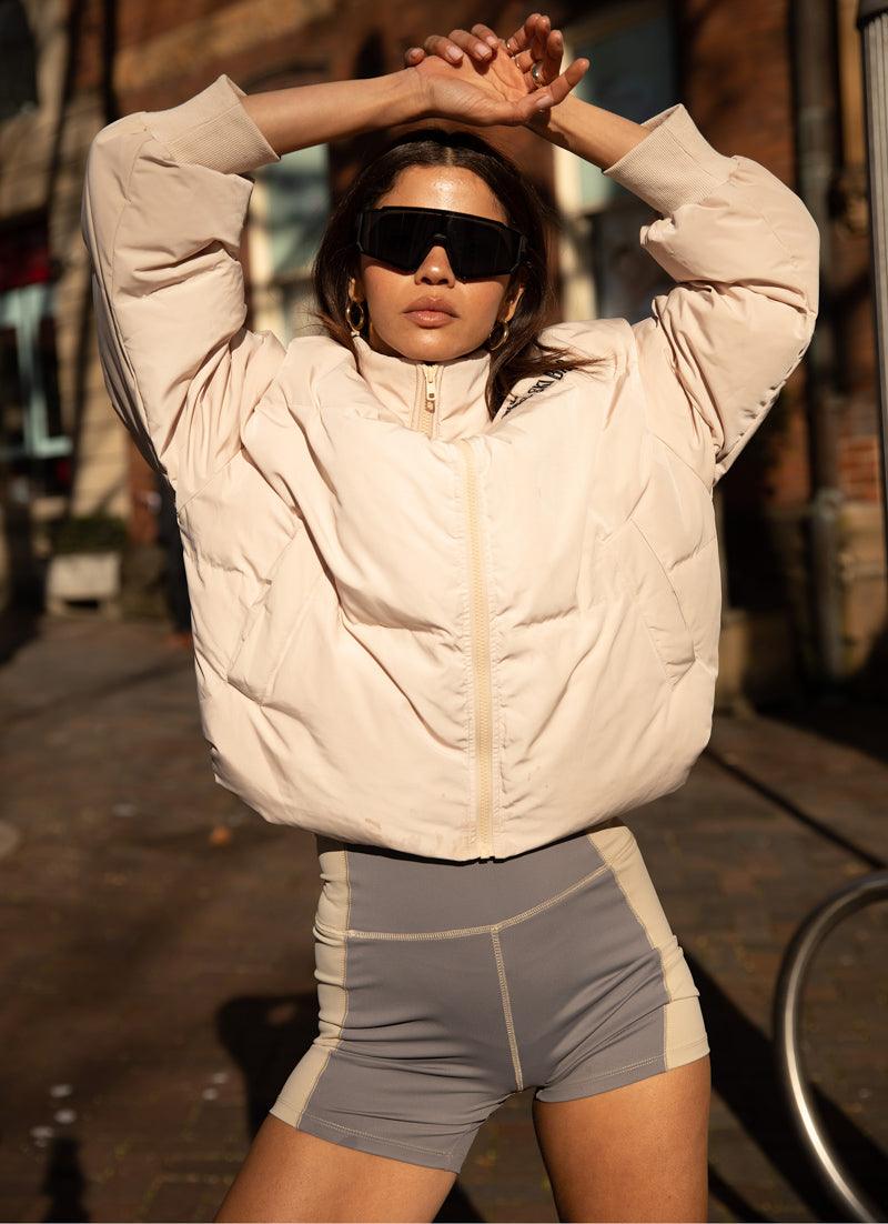 A new spin on your weekend wardrobe! The Ski Resort Cycle Shorts are high waisted bike short crafted in contrasting neutral tones and made from soft, flexible material. Complete the sports luxe look with the Ice Breaker Active Tee and layer with The Slopes Puffer Jacket.