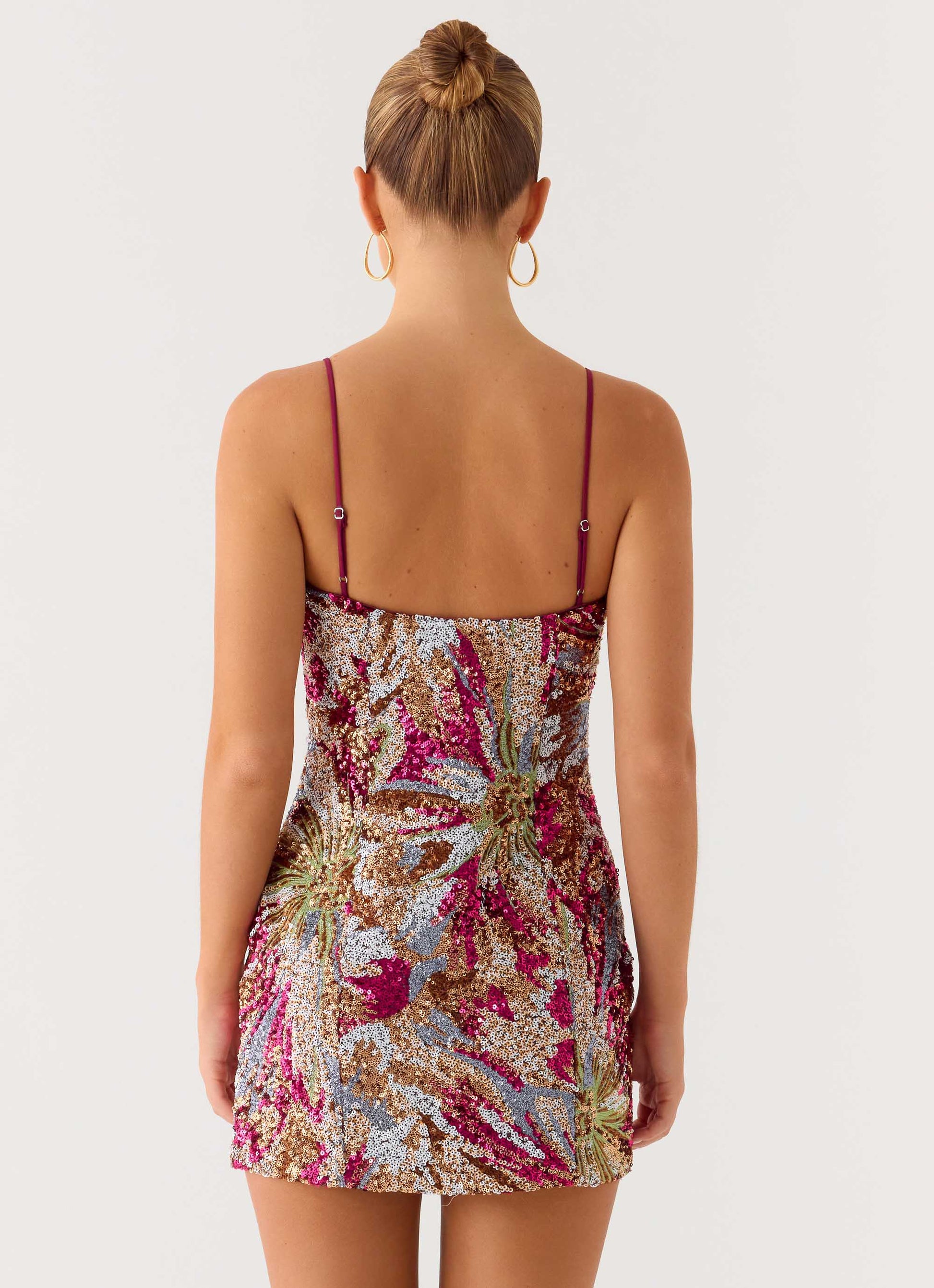 Soul Sound Sequin Mini Dress - Fuchsia Floral Beaded