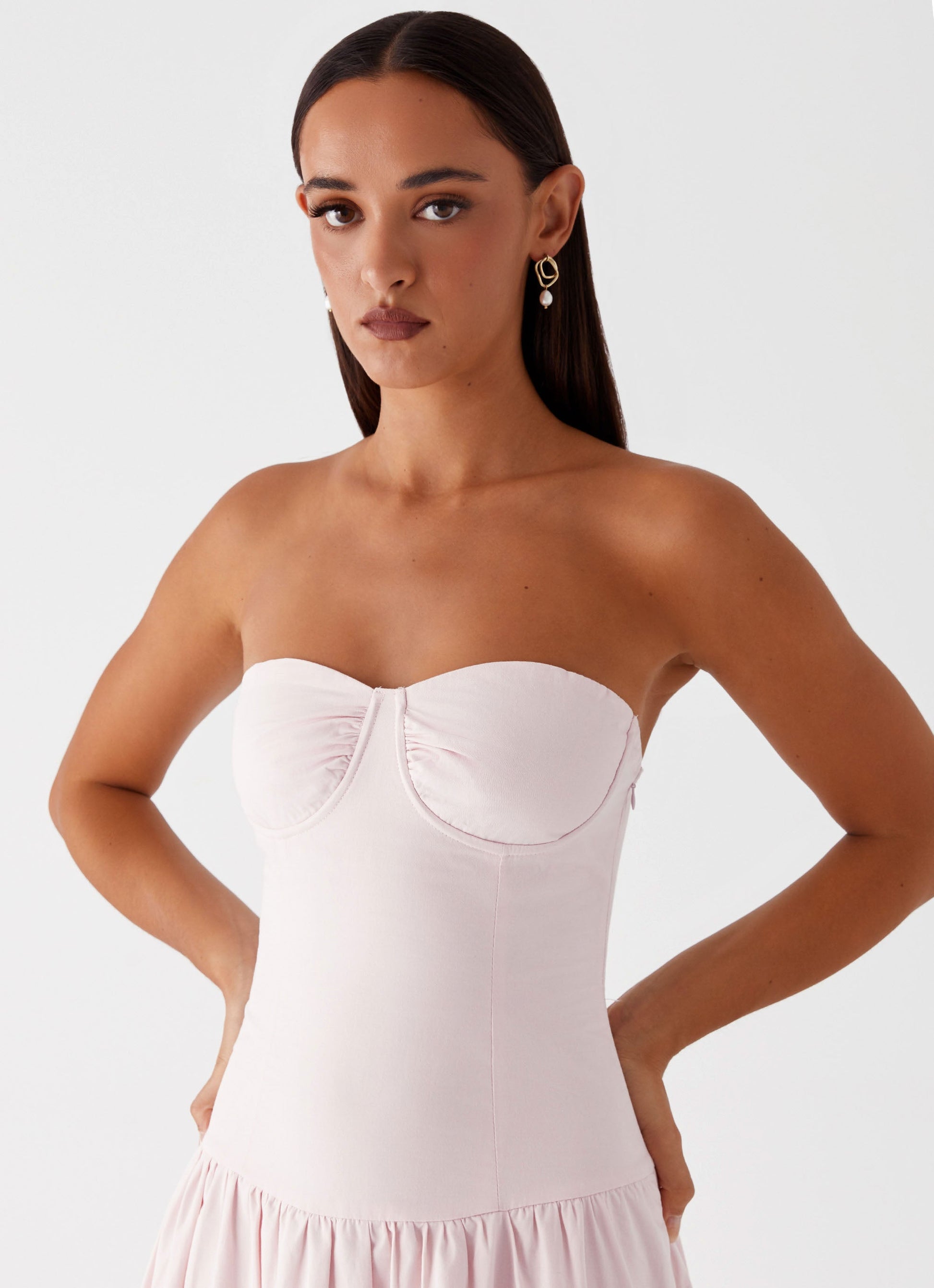 Step into the spotlight with the Starla Maxi Dress. This strapless beauty features a chic A-line skirt and a flattering drop waist, creating a flowy, elegant silhouette perfect for any evening event. Effortlessly glamorous from dusk till dawn.