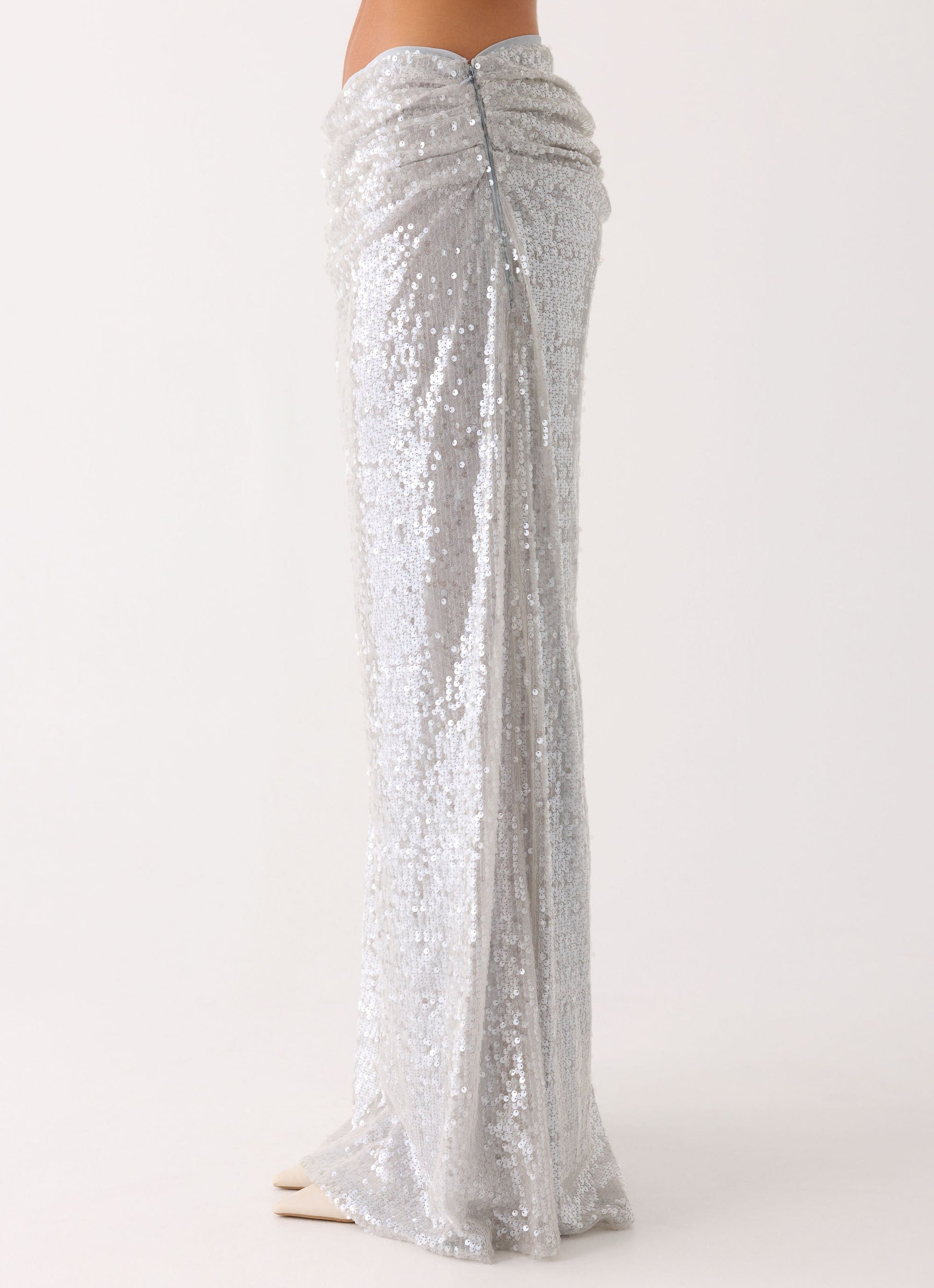 The Susie Sequin Maxi Skirt is a show-stopping piece designed for elegance and movement. Featuring a low-rise silhouette with a front draped detail, it is fully lined for comfort and finished with a side invisible zipper and hook-and-eye closure for a seamless fit. Perfect for special occasions or evening events.