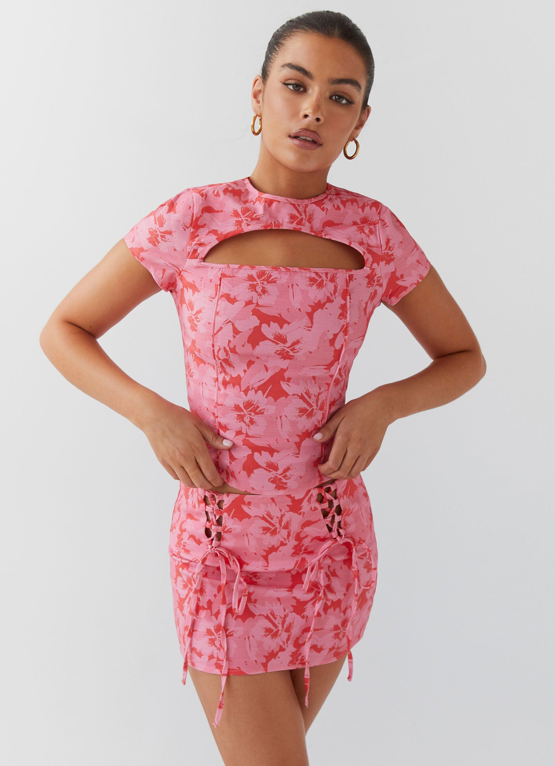 Take A Sip Tie Mini Skirt - Cherry Blossom