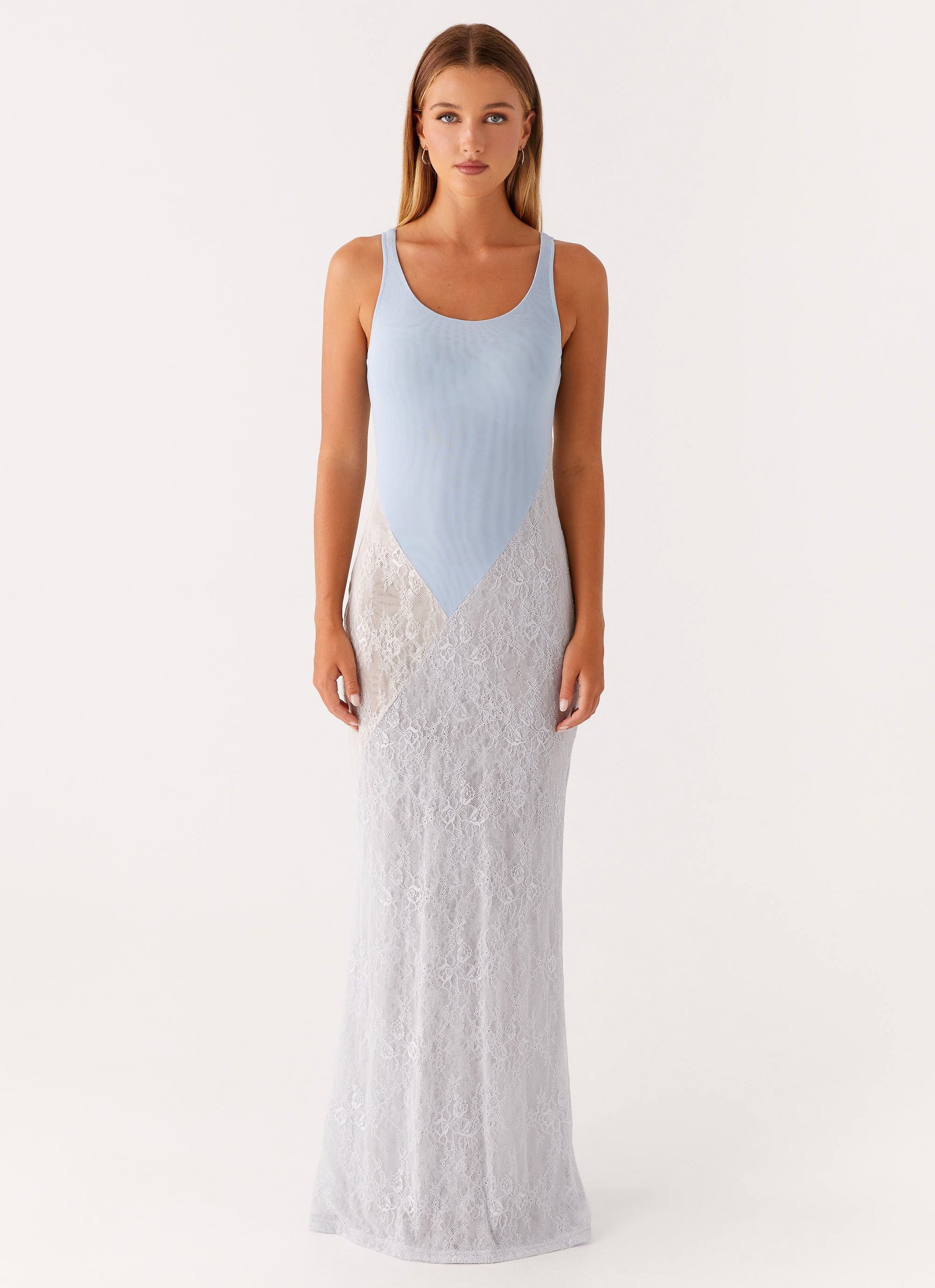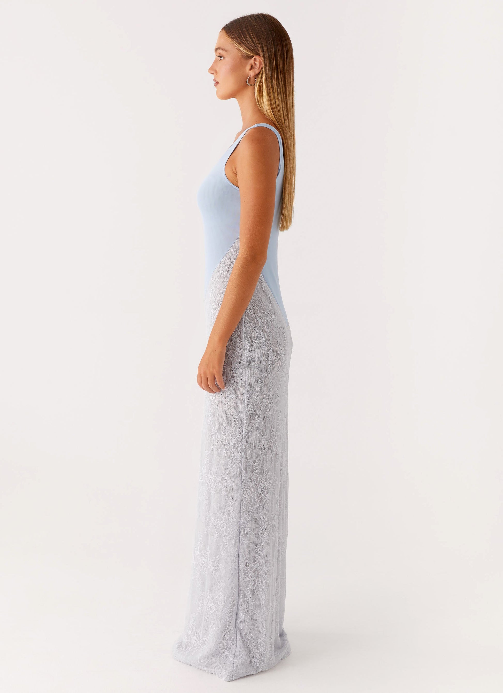 The Twilight Dreams Maxi Dress is effortlessly romantic with a hint of allure. Featuring a soft scoop neckline and delicate lace detailing, it creates a timeless silhouette that moves with grace.